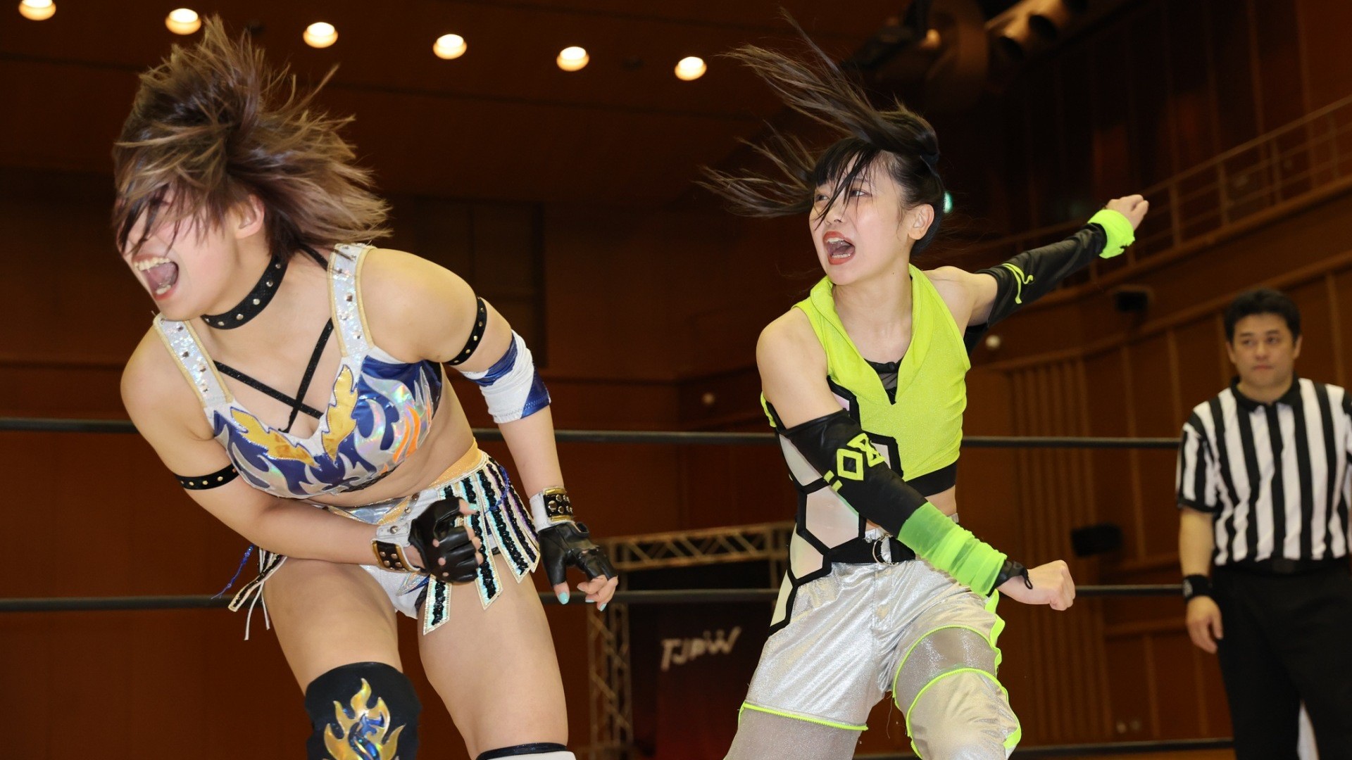 At TJPW GRAND PRINCESS 2026, MIRAI will defend the International Princess Championship against her former tag team partner, Suzume. Over a month out, the two clashed in tag action at TJPW Final Curtain in KOBE Art Center, in what is likely to be their last encounter before meeting in the Ryogoku Kok