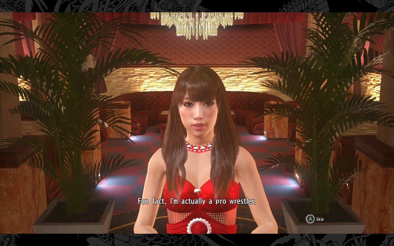 Her portrayal in Yakuza 6 is close to her real life counterpart, even going as far as to include her background as a professional wrestler and “fighting against a huge foreigner“, and you get to do karaoke with her as a date if you level her hostess level enough.