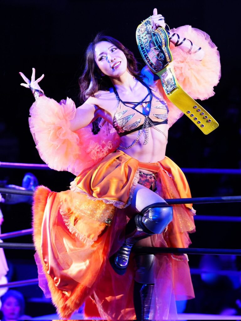 I have special feelings for every title, so it’s really hard to narrow it down to just one… but I’d have to say the 3D Trios belt is number one. As I’ve mentioned before, winning this title meant a great deal to me, and I’m truly proud that I fought my way through the tournament to become the first-ever champion. But it’s not just that. There’s also the Best Body Japan Pro-Wrestling Women’s Tag Team Title, which I won and defended alongside Miko Hasegawa, and which we eventually had to relinquish when she retired. And then there’s the Women’s Singles Title, which was taken from me in Saki Akai’s final singles match before her retirement. These are also indispensable, precious titles in my career.