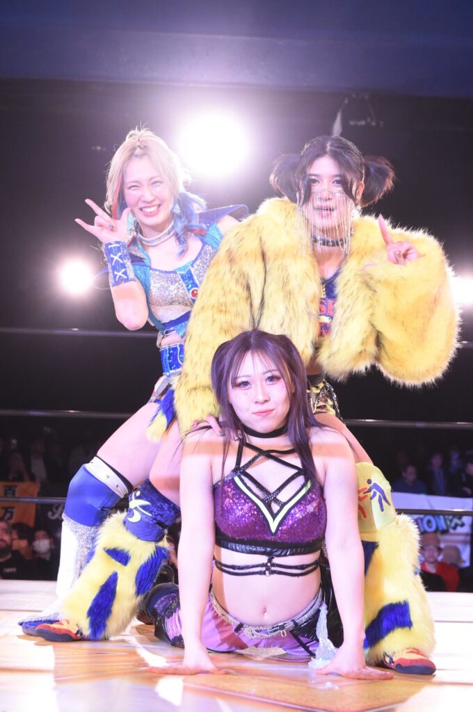 I was attending pro wrestling school, so even before joining the group, I was always thinking, “I’m ready to debut anytime!” I felt our wrestling styles were a perfect match!