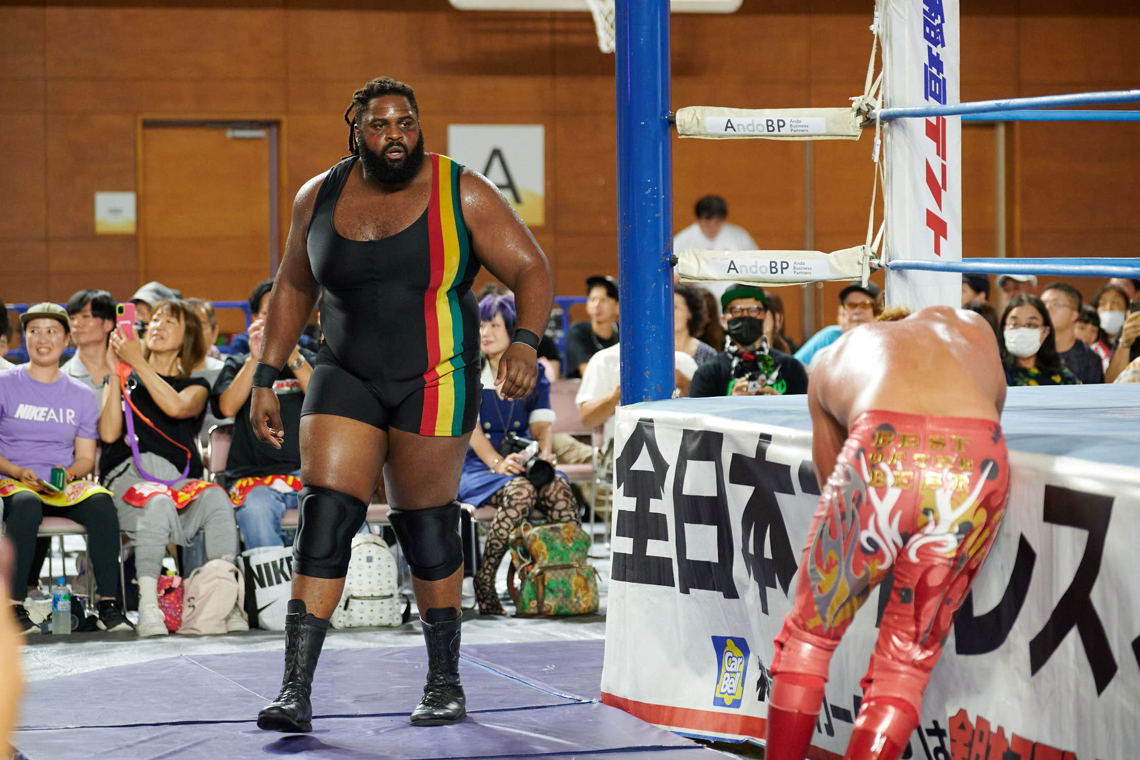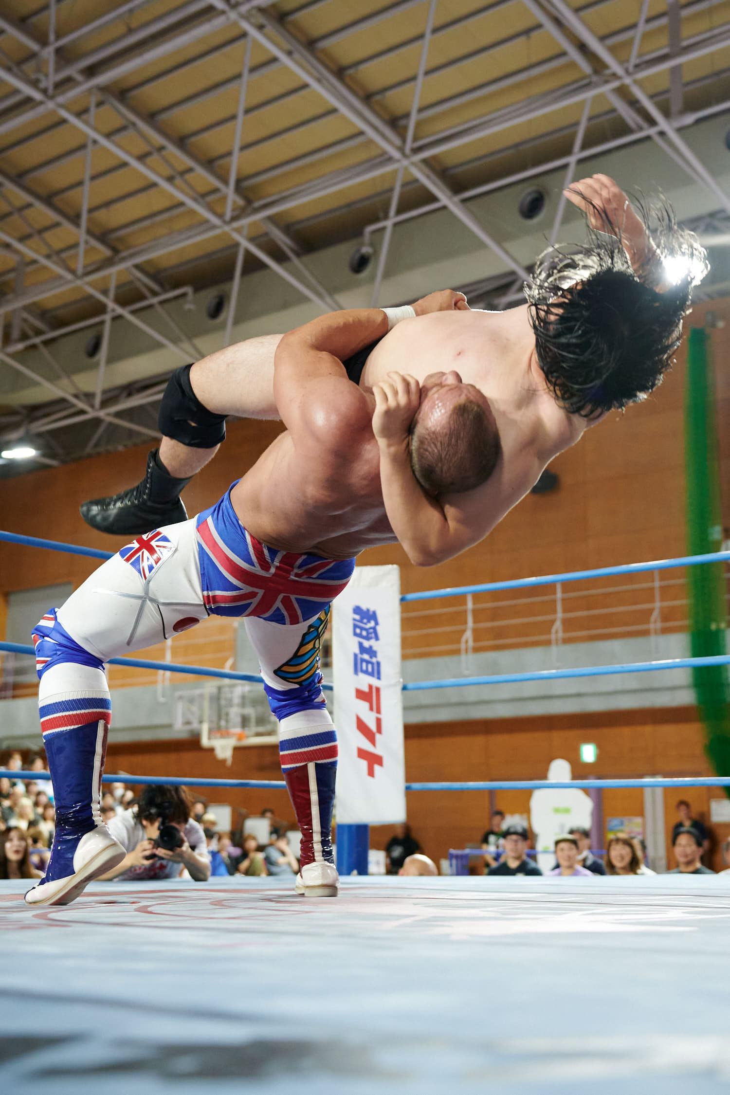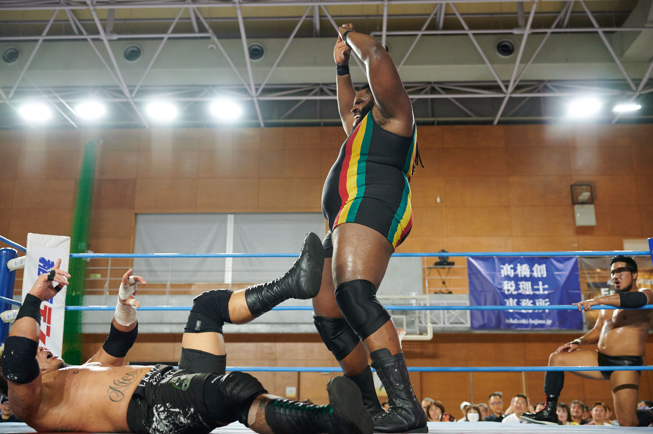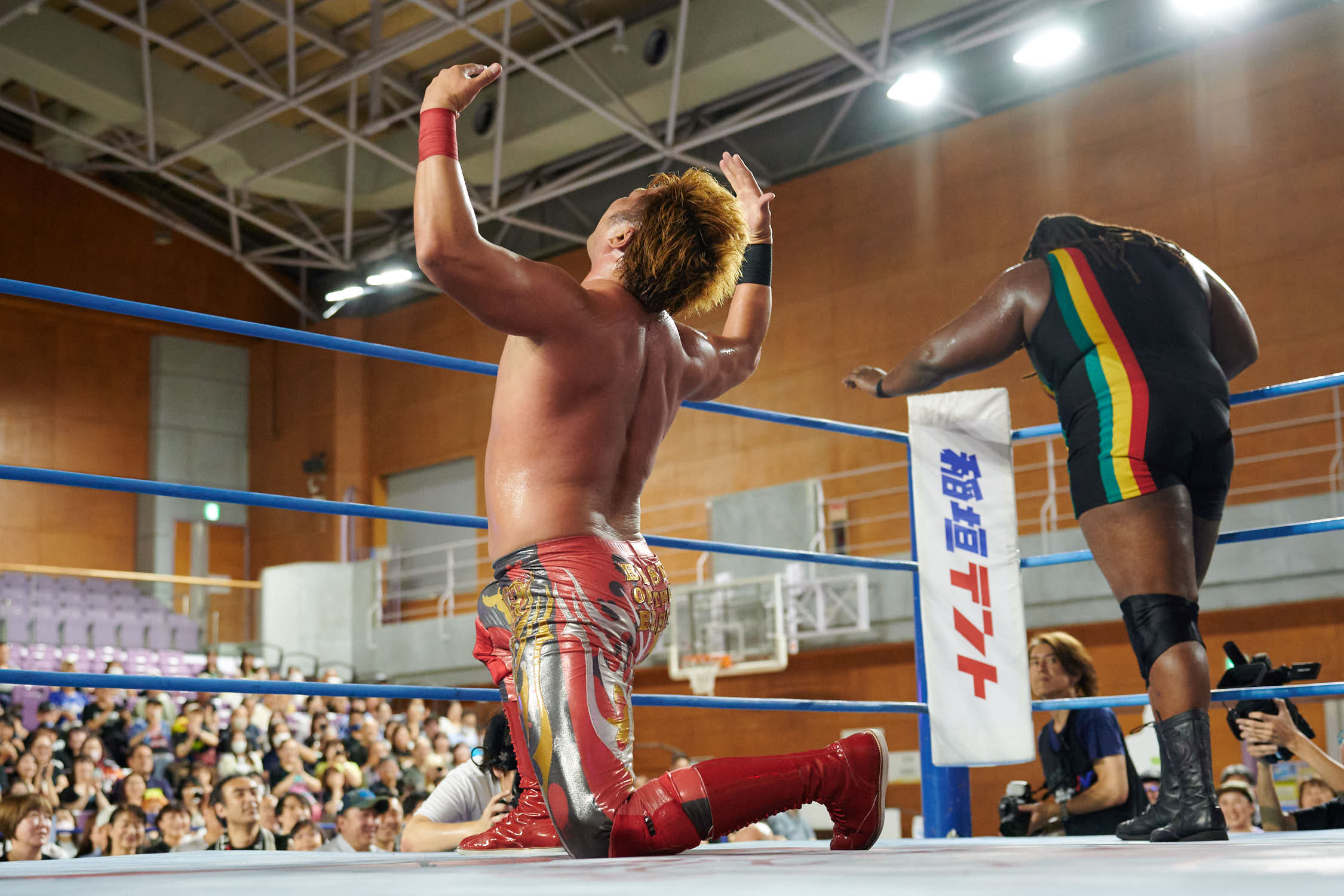 Tokyo— While Giant Baba’s life-size cutout stood sentinel at Machida Gym yesterday, the real tribute to All-Japan Pro Wrestling’s founder was written in the devotion of 855 fans who filled Sun Machida Asahi Gymnasium to support both charity and the unique heavyweight wrestling style that continues to define AJPW’s global identity.
