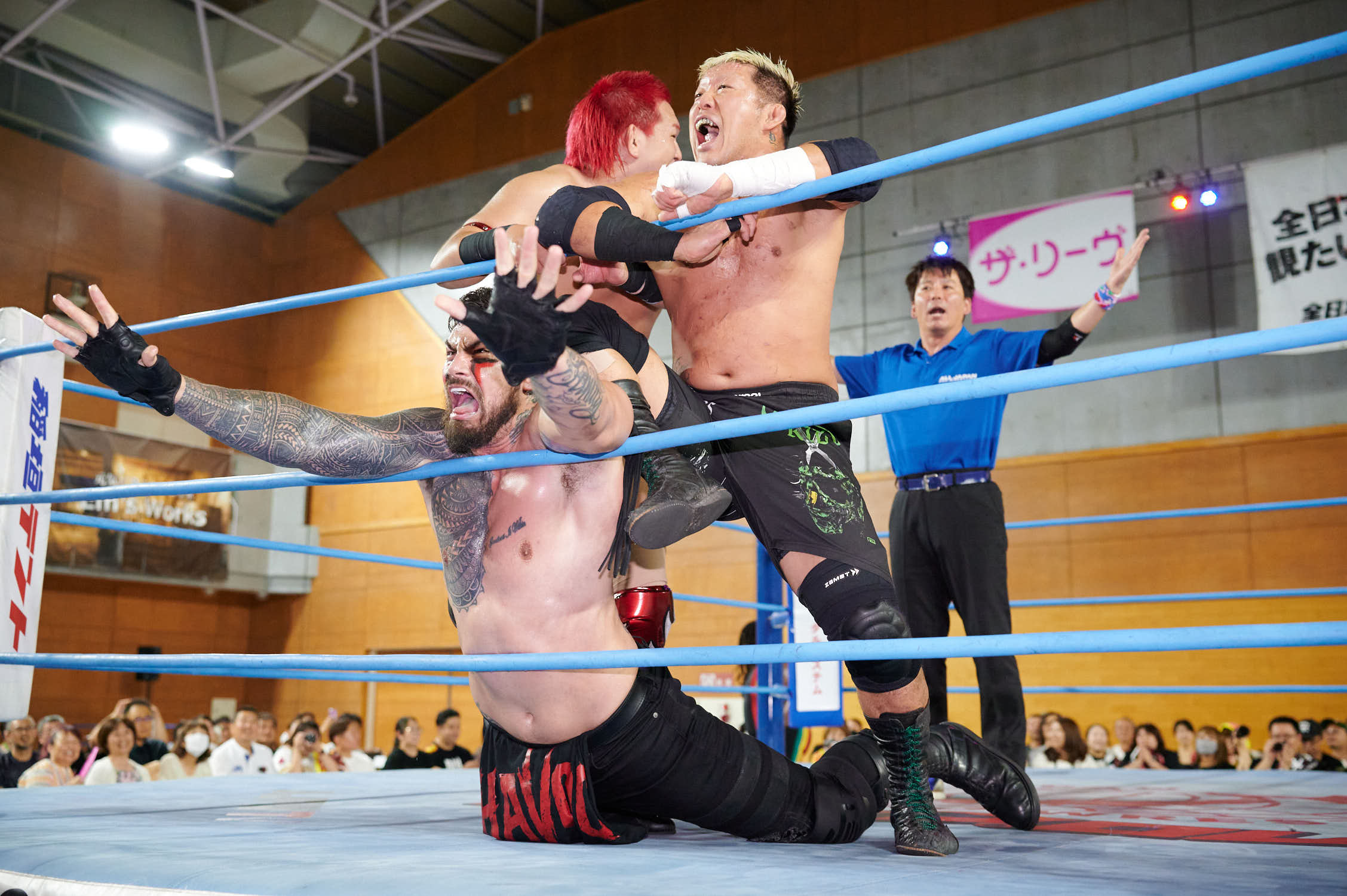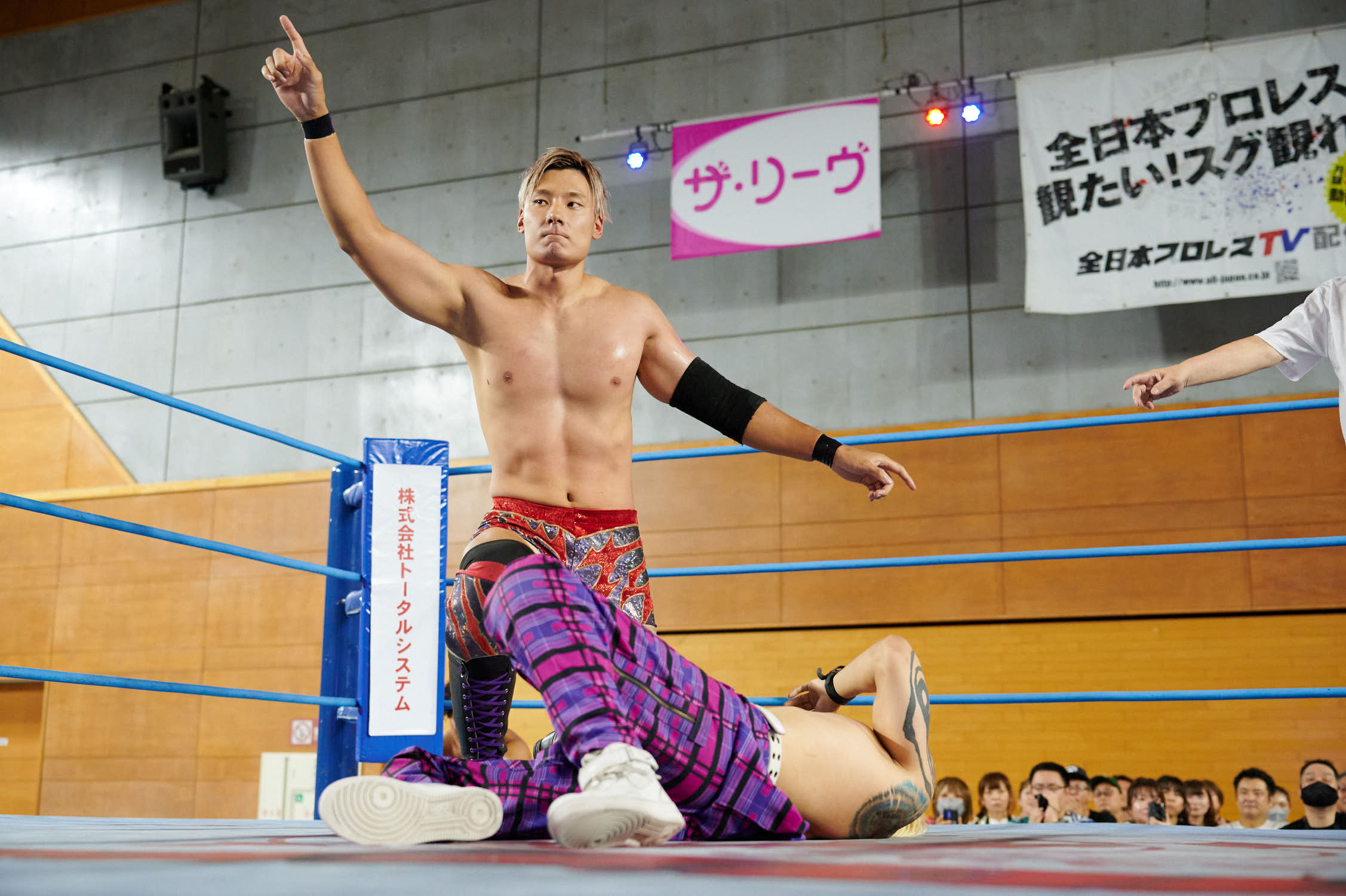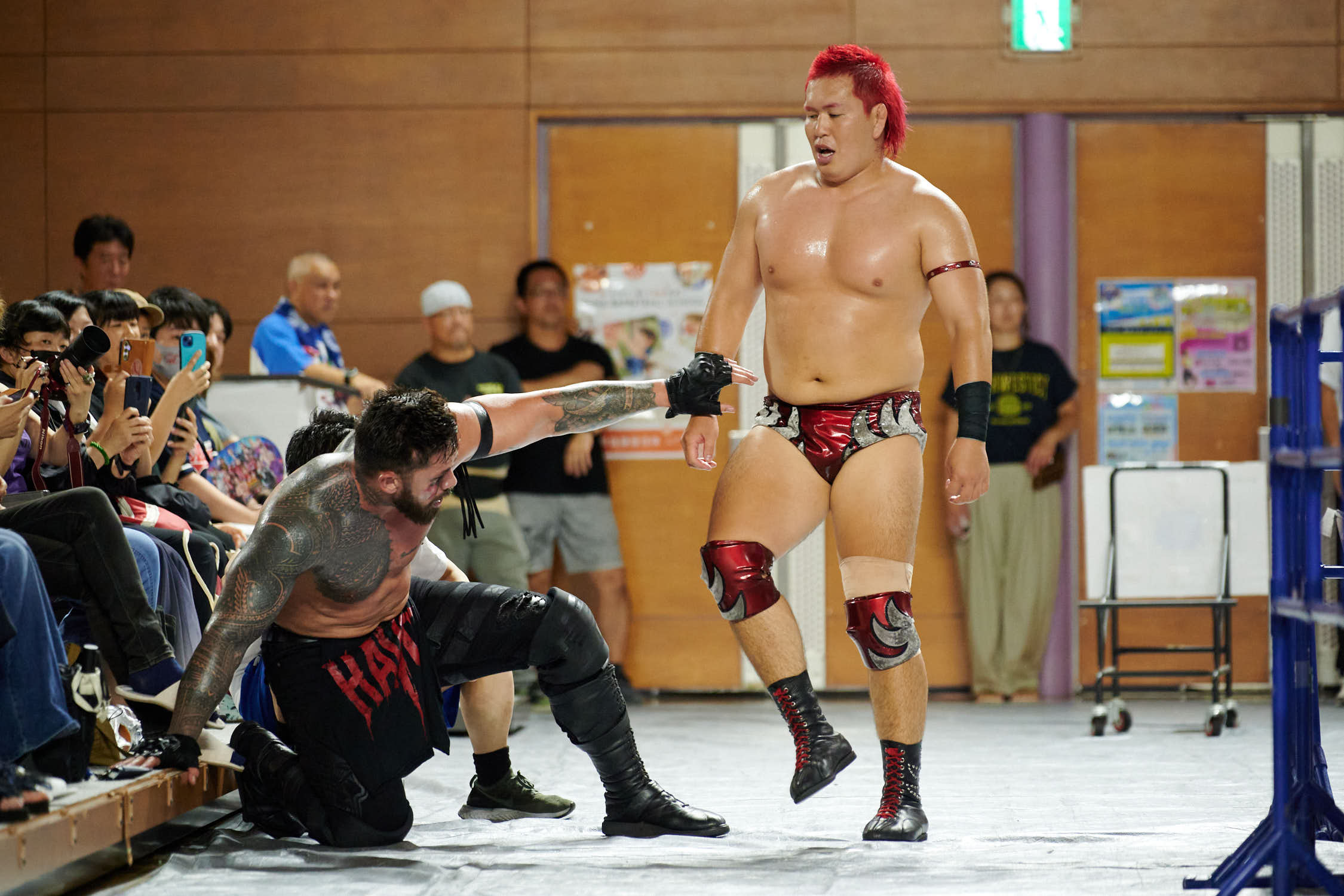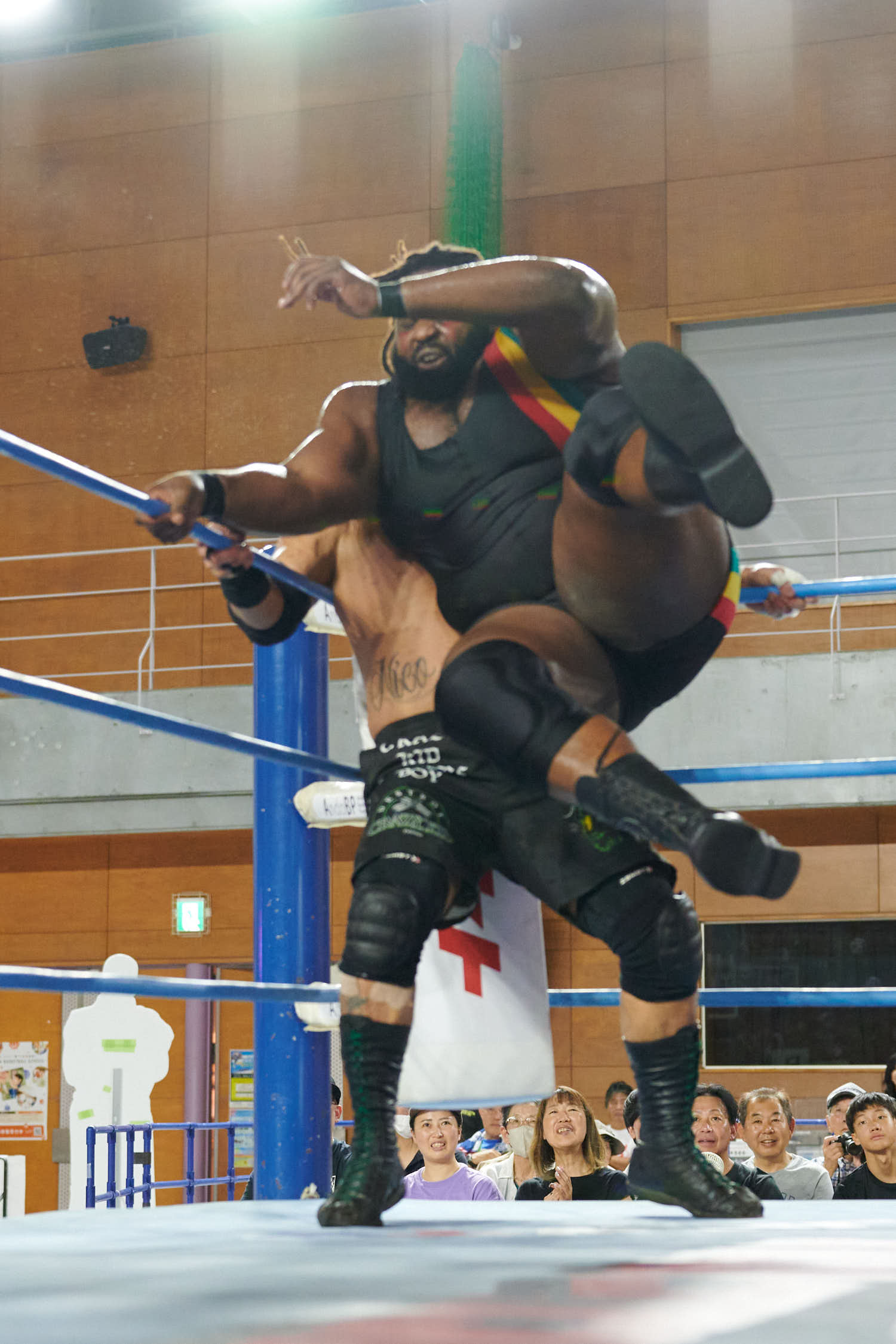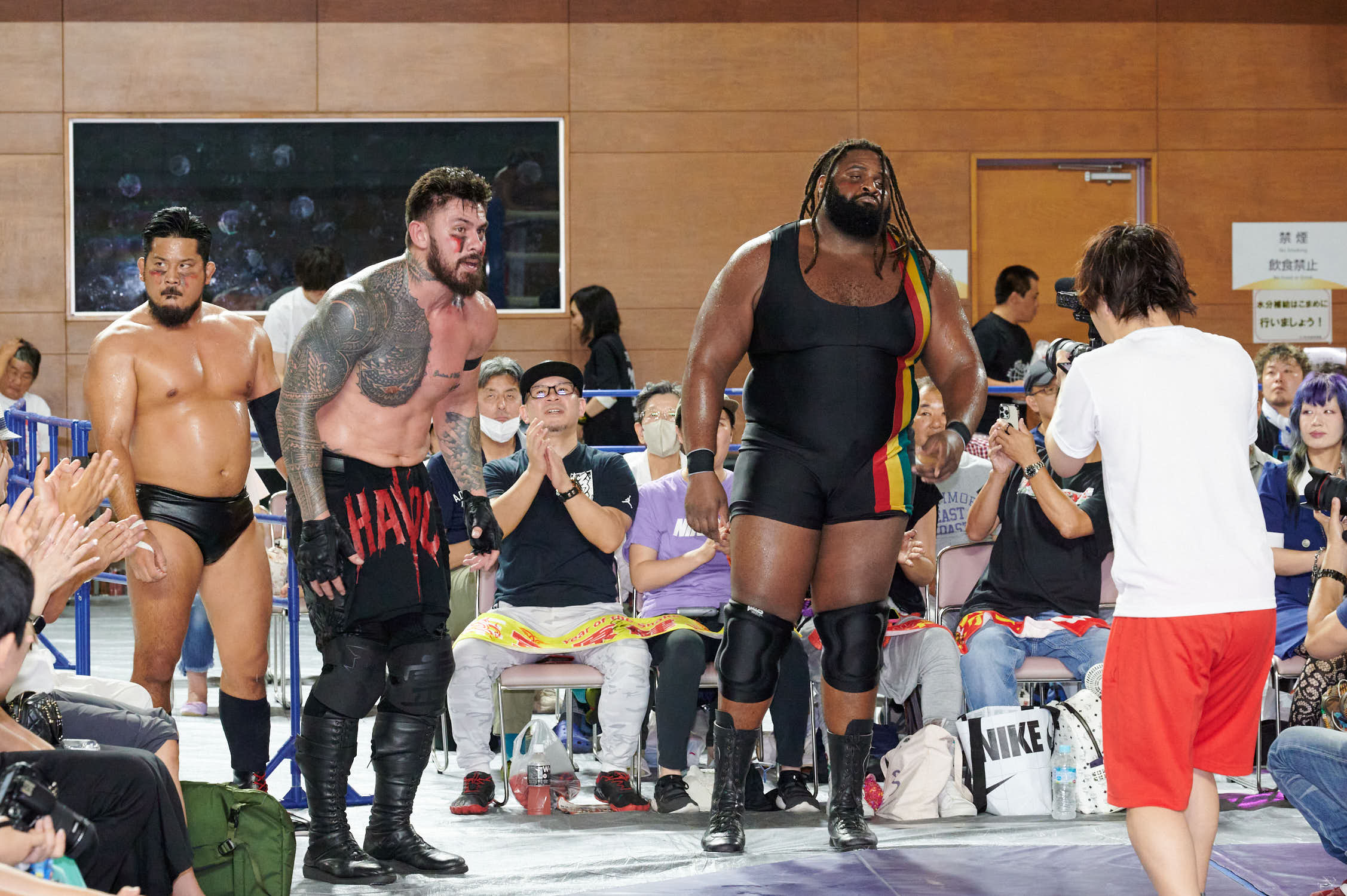 Tokyo— While Giant Baba’s life-size cutout stood sentinel at Machida Gym yesterday, the real tribute to All-Japan Pro Wrestling’s founder was written in the devotion of 855 fans who filled Sun Machida Asahi Gymnasium to support both charity and the unique heavyweight wrestling style that continues to define AJPW’s global identity.