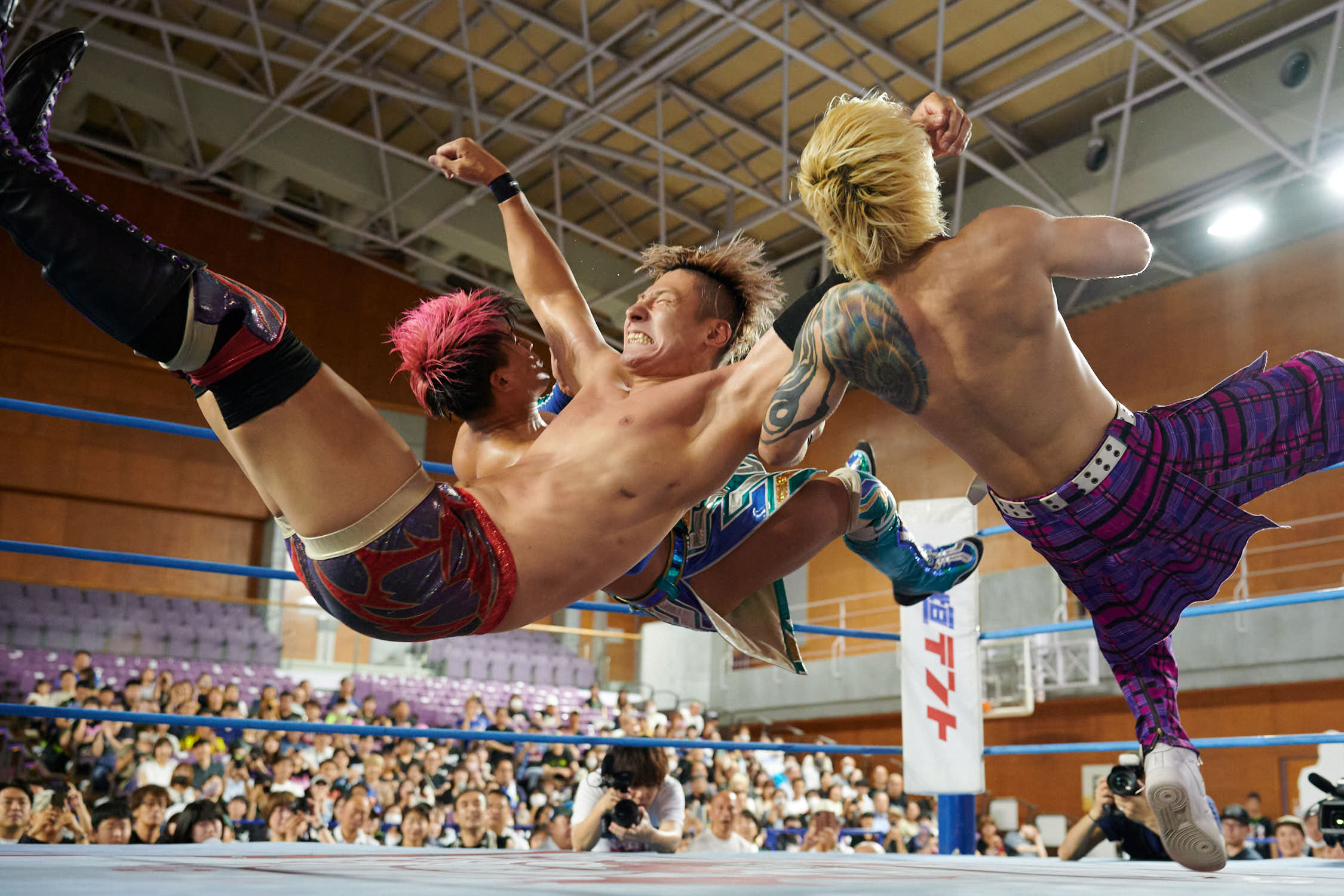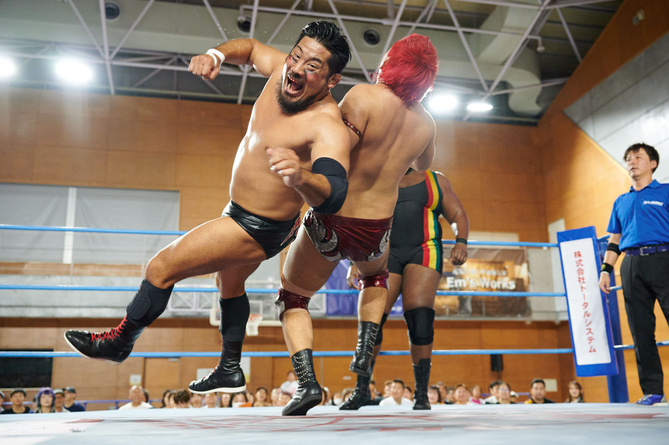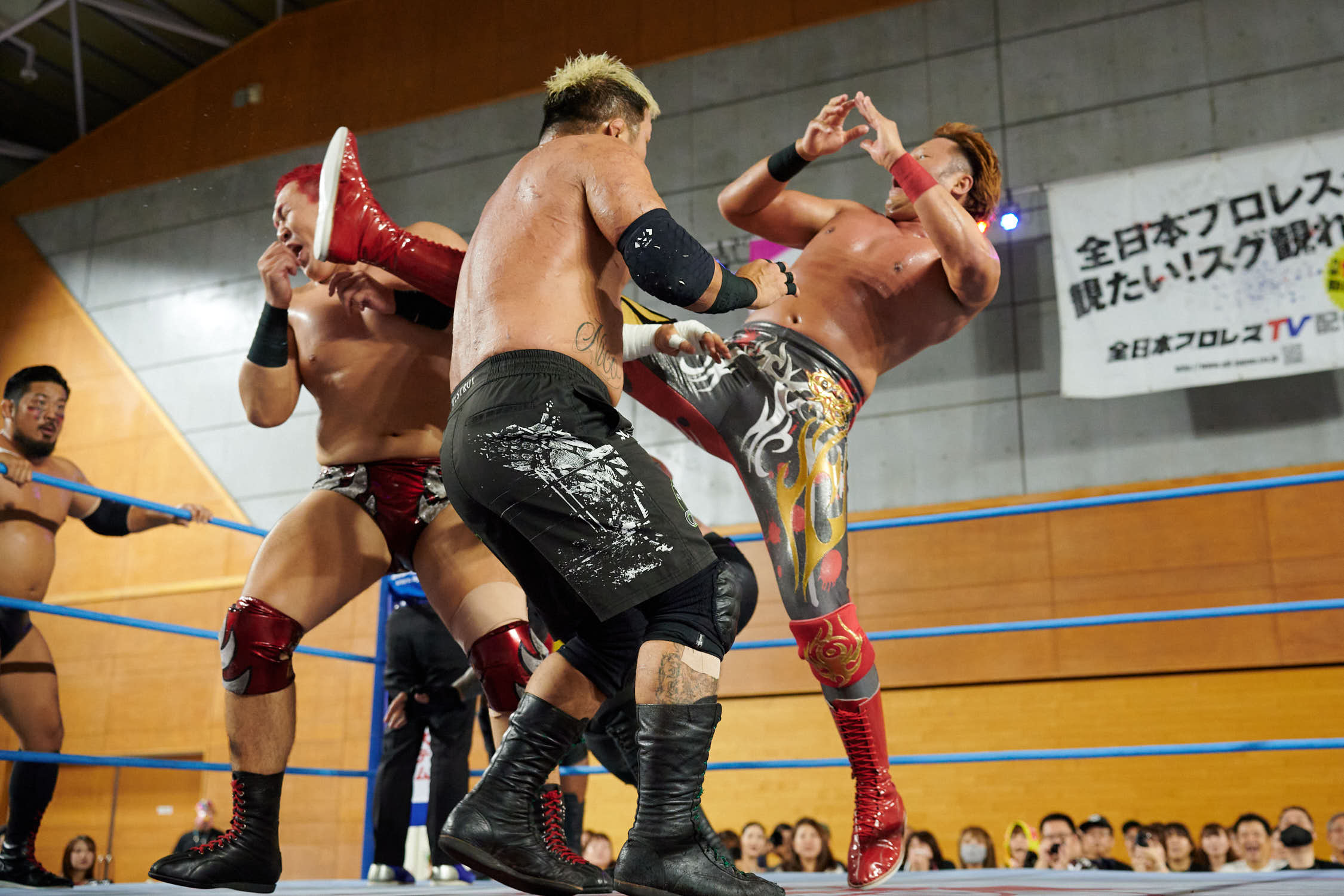 The main event’s six-man tag structure, with Kento Miyahara teaming alongside Ryuki Honda and Masashi Takeda, demonstrated AJPW’s commitment to collaborative wrestling storytelling. Honda’s decisive plane throw on Shotaro Ashino was the kind of authentic athletic moment that continues to draw AJPW’s global streaming audiences, along with fans young and old in Japan.
