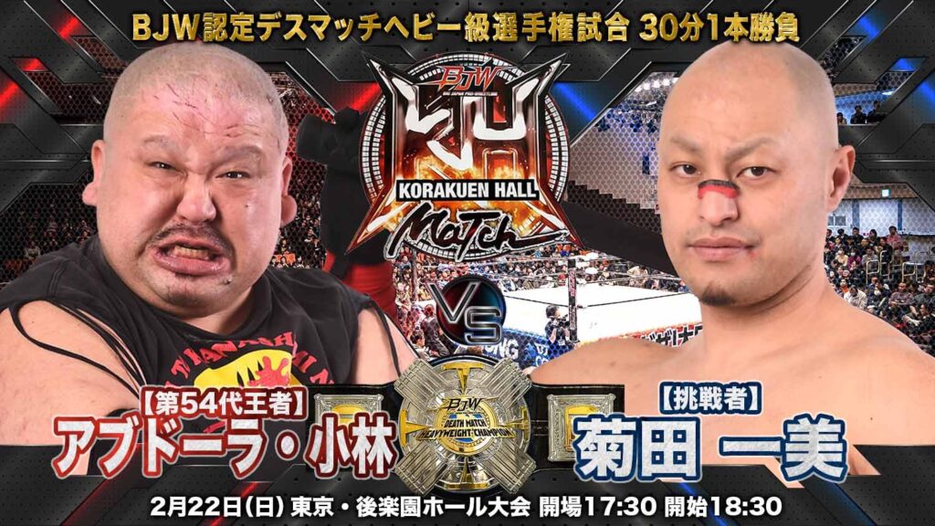 Big Japan Pro-Wrestling returns to Korakuen Hall on Feb. 22nd with another big event at the famed arena. There will be two championship matches scheduled for the show as BJW continues its push to draw 1,000 fans to Korakuen Hall.