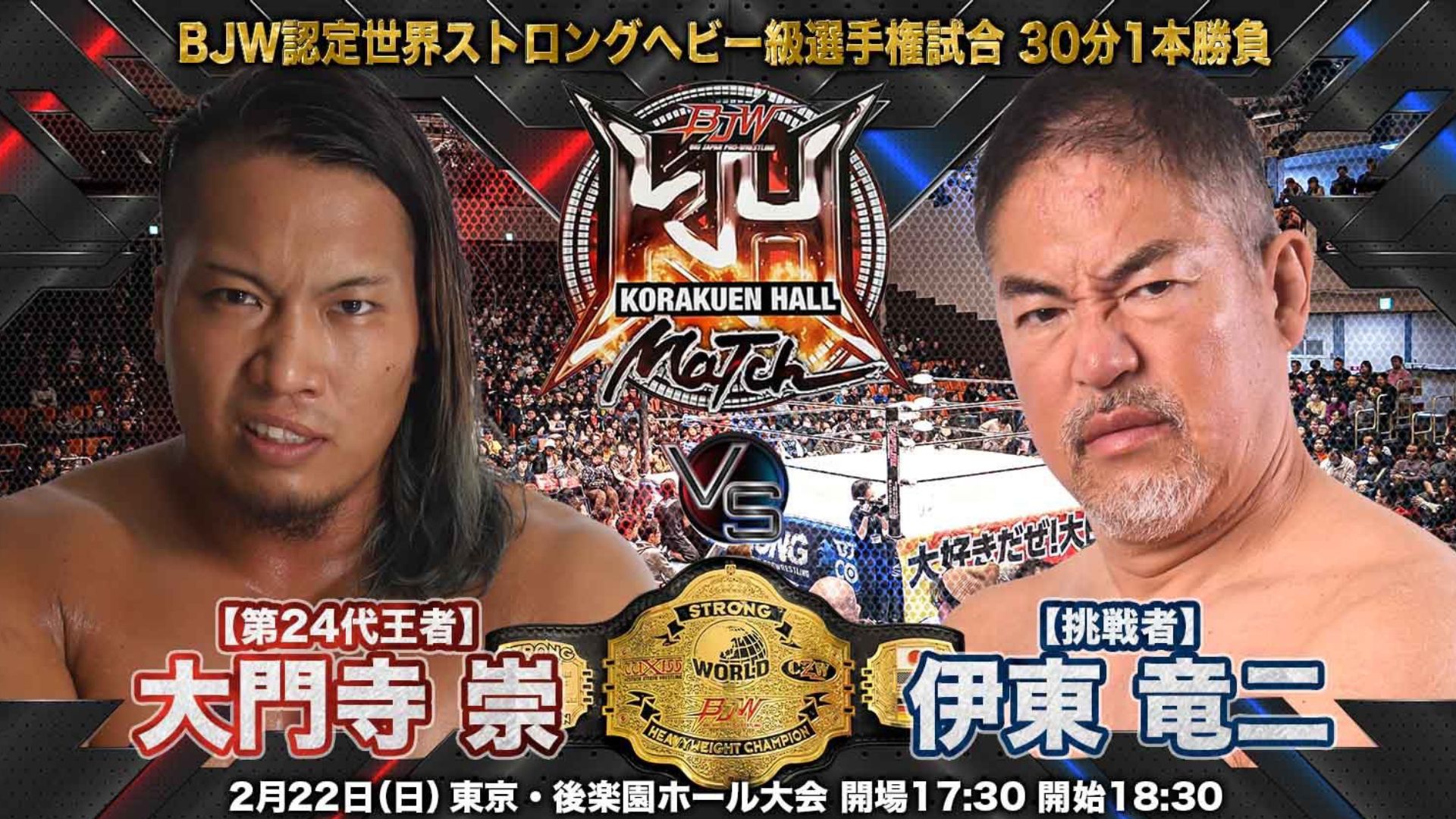 Daimonji So won the BJW World Strong Heavyweight Title back on Oct. 13th 2025 and has proven to be a dominant champion. Ryuji Ito hopes to end the reign of Daimonji So when the two meet on Feb. 22 at Korakuen Hall.