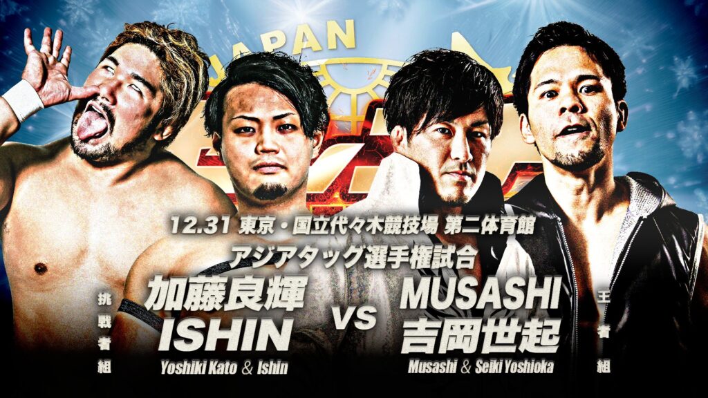 In another championship bout set for Zennichi New Year’s Eve 2025, the All Asia Tag Team Champions Seiki Yoshioka & MUSASHI will defend their titles against the DragonGate team of ISHIN & Yoshiki Kato.