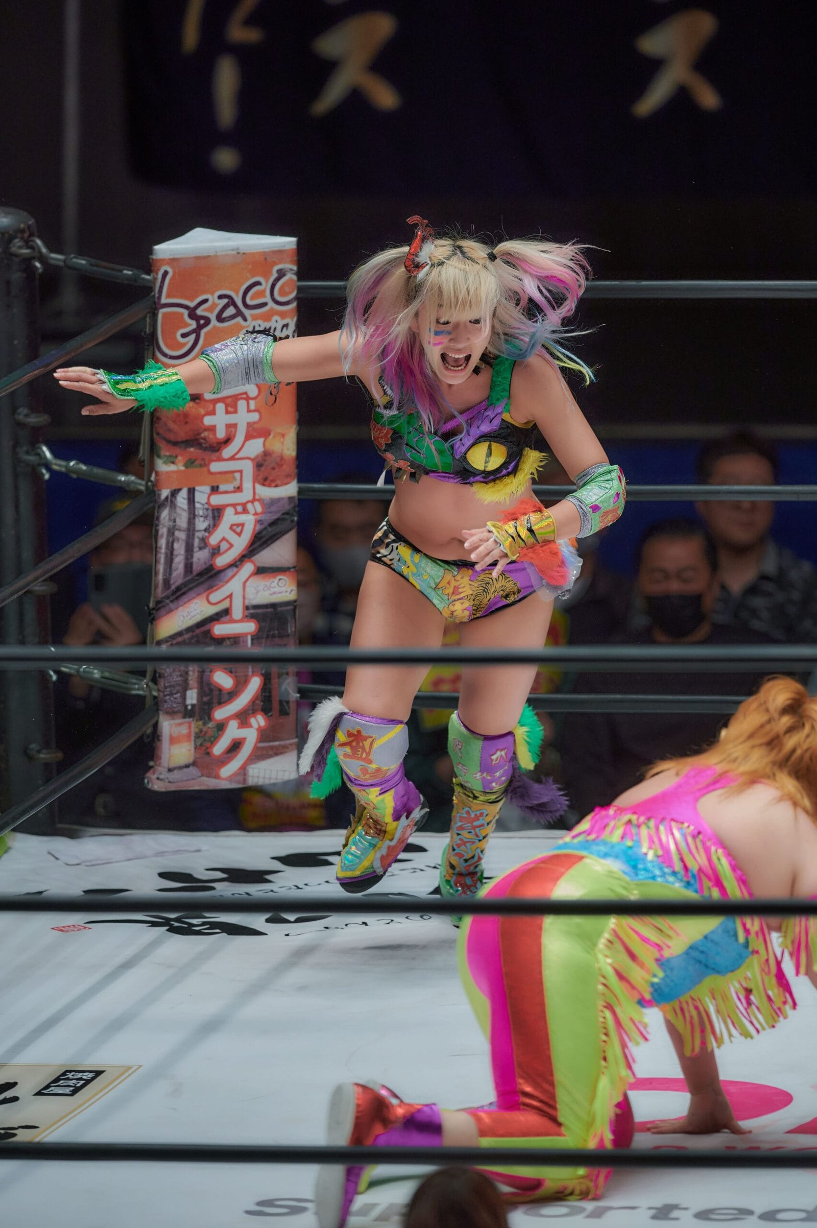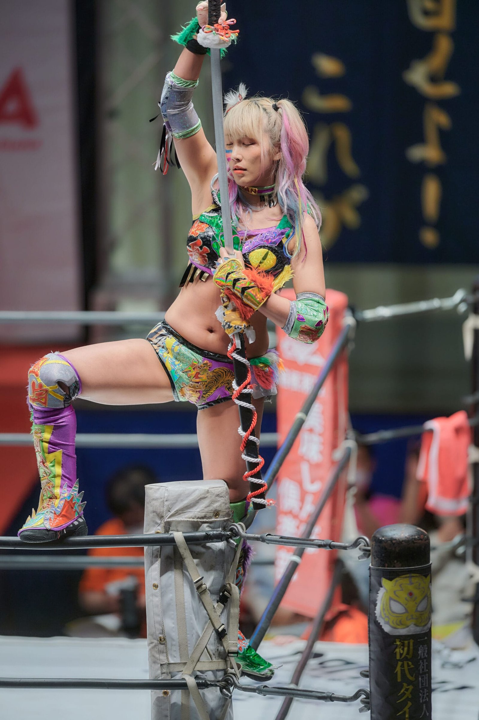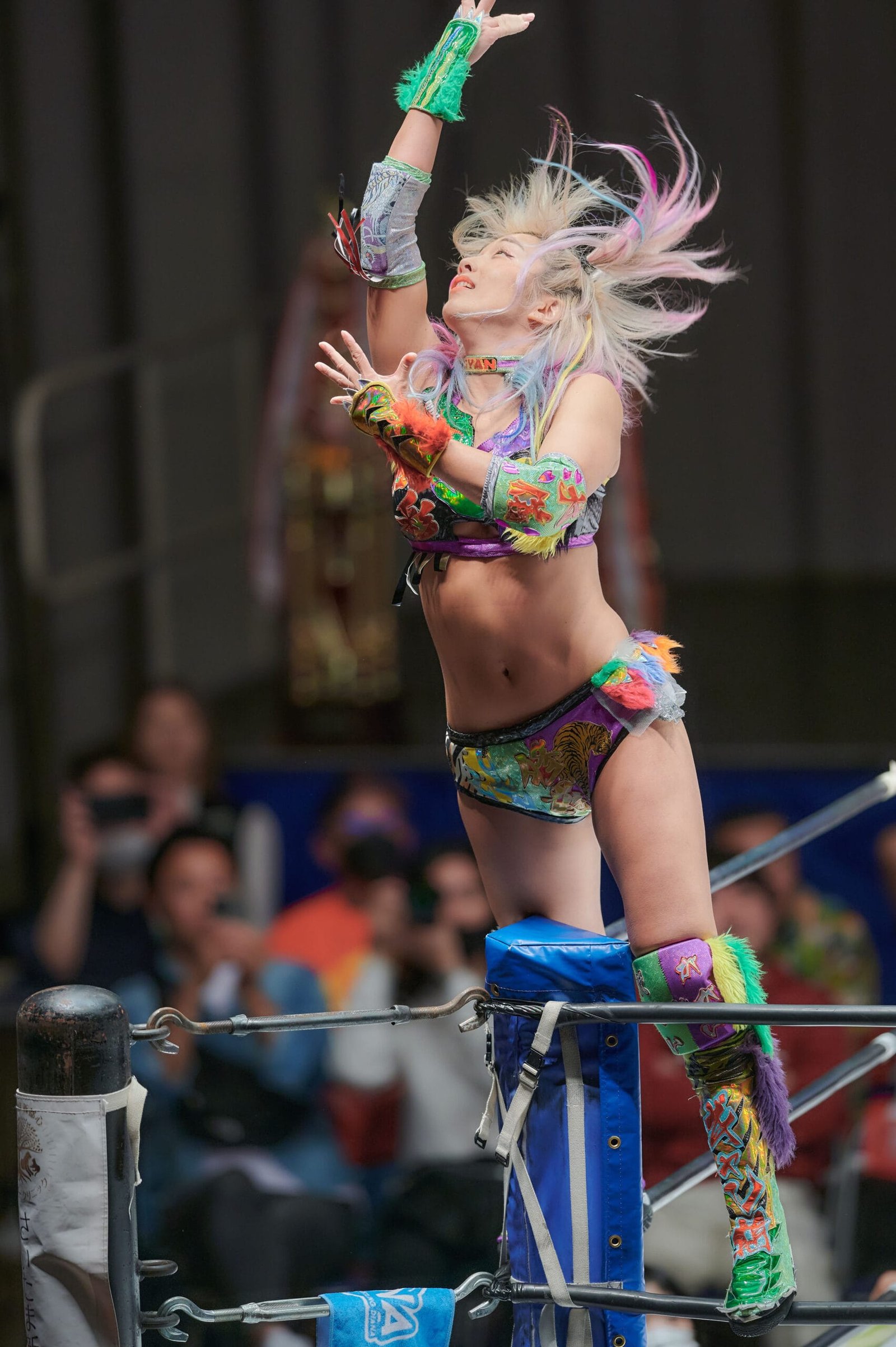 Unagi Sayaka is an instantly recognizable character. She has strong vibrant colors matching her kabukimono style and a wide ranging set of moves that allowed her to capture singles and trios team gold during her time with Stardom.