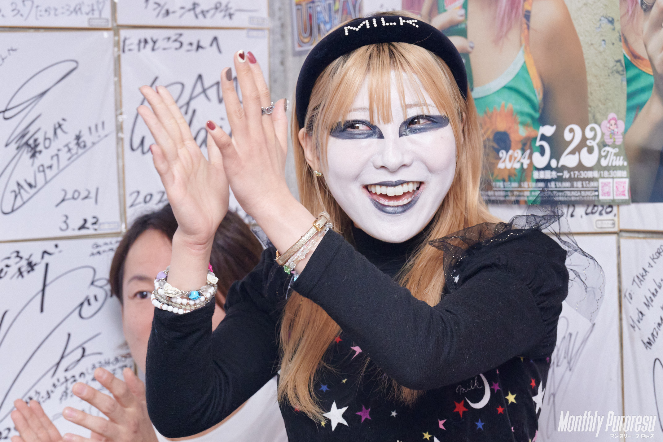 The card is yet to be announced, but DASH Chisako flanked Kyoko at the presser and said she wants to have a match against somebody who she normally isn’t able to (because she’s exclusive to Sendai Girls, Meiko Satomura’s company). This night is one DASH wants to have a hardcore match – against somebody that she normally wouldn’t be able to compete with.