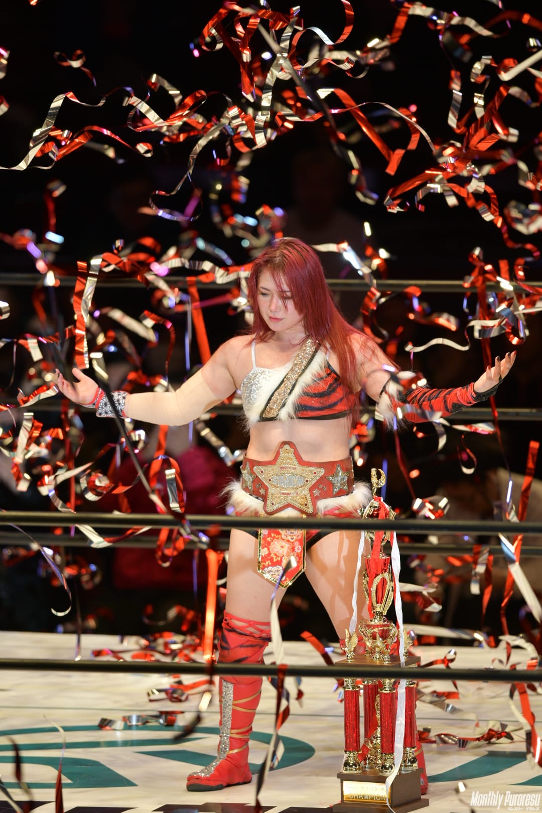Maika admitted that she comtemplated retirement after losing in the 5STAR GP finals to Suzu Suzuki; she powered through the sadness and pushed and climbed her way to the top of the company, where she can proudly proclaim herself as World of Stardom champion.