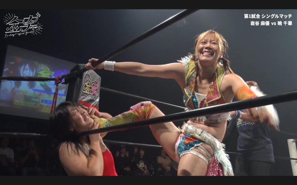 The two had a fantastic match that saw Akatsuki’s intensity on display from the opening bell. Akatsuki gave Iwatani a running shoulder tackle as the Icon was in the midst of her baseball throwing pre-match routine.