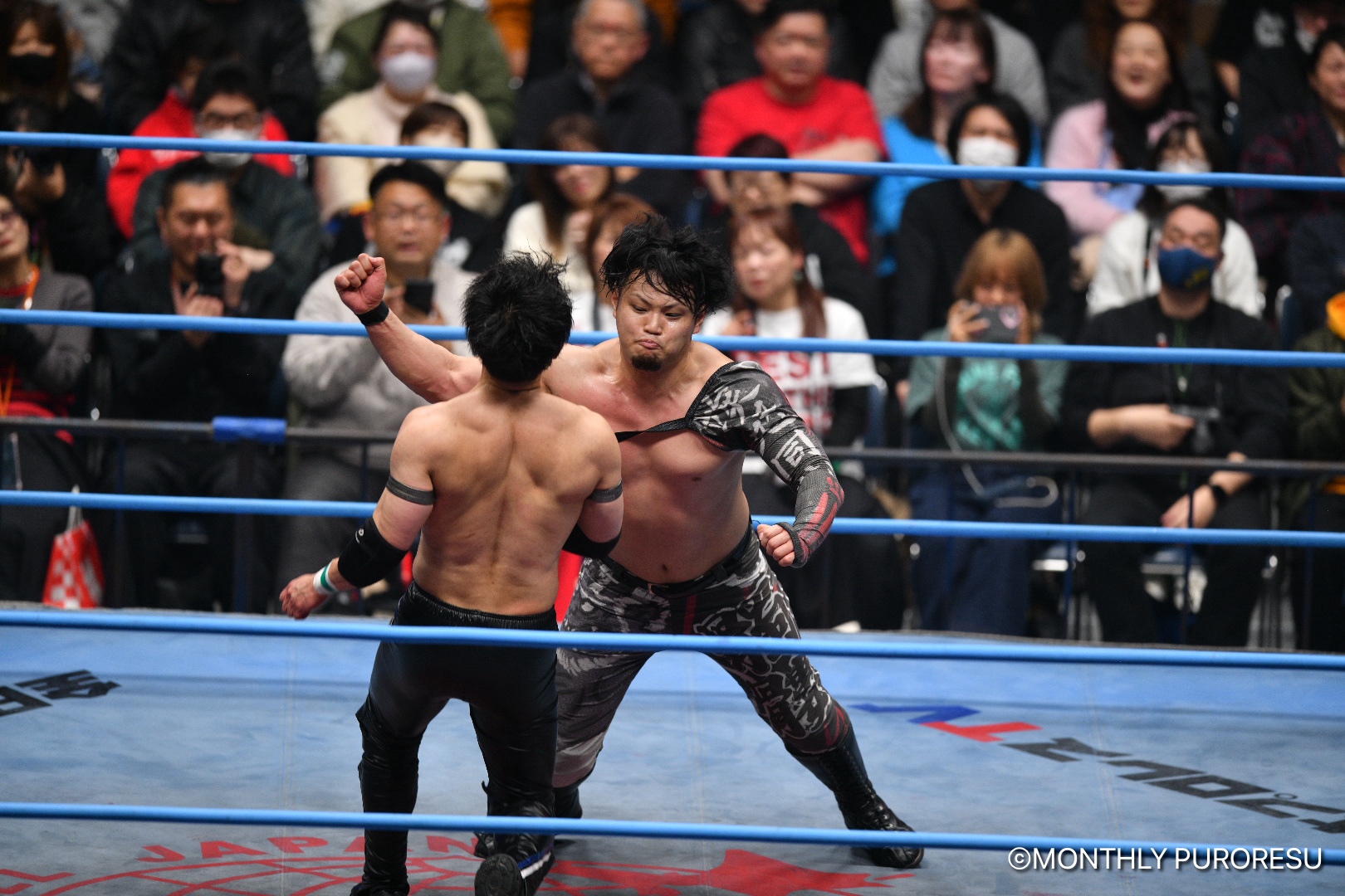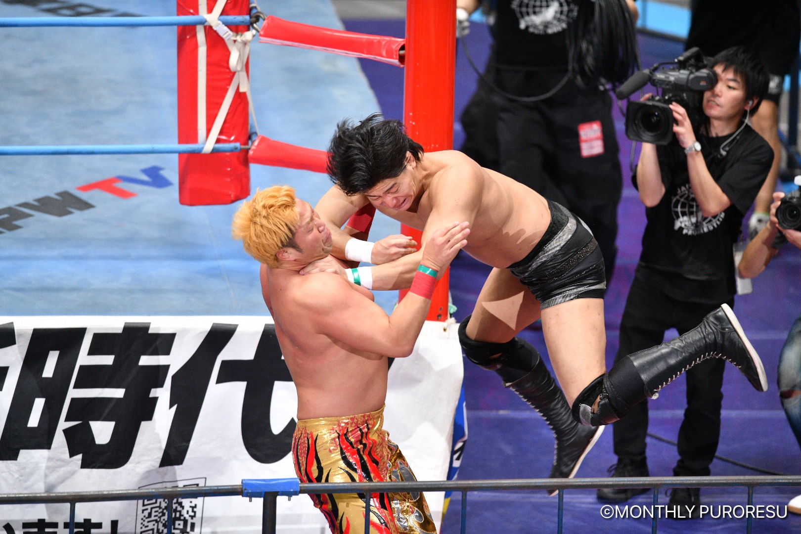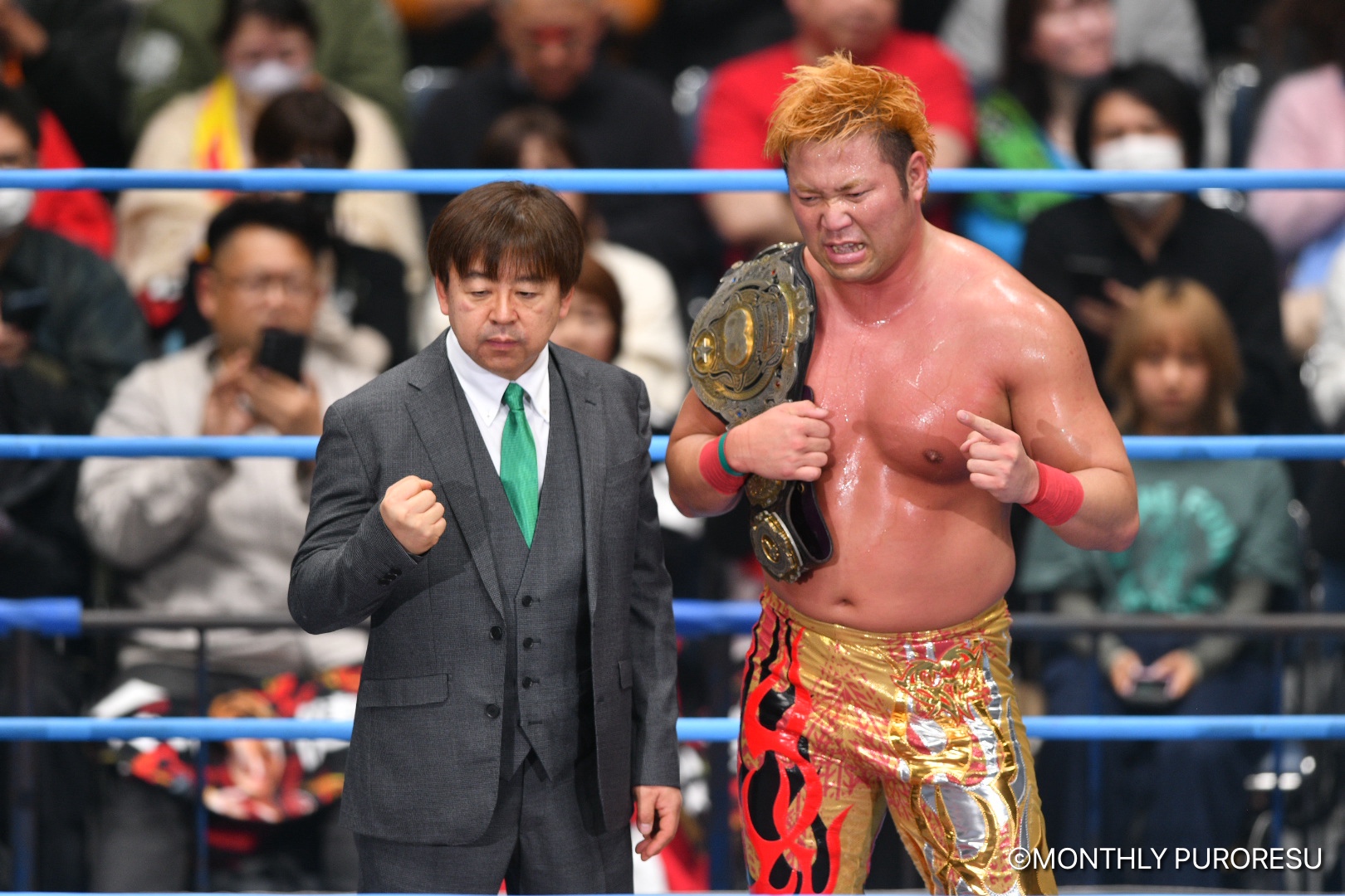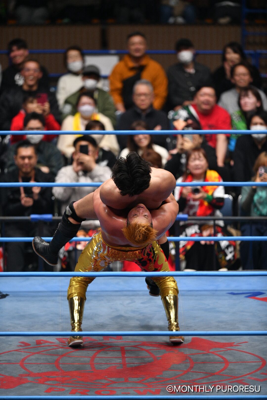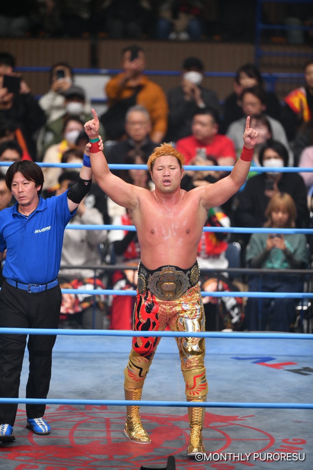 In the main event, Kento Miyahara defeated Yuma Anzai to retain his Triple Crown Championship. Match of the night as Miyahara and Anzai delivere together an oustanding performance that had the fans in the edge of their seats for over 20 minutes. Pure intensity ever changing as Anzai ended very close of dethroning Miyahara. After the match, Miyahara did a promo accepting that Anzai is a star now, but Miyahara is a superstar so they are not in the same level.