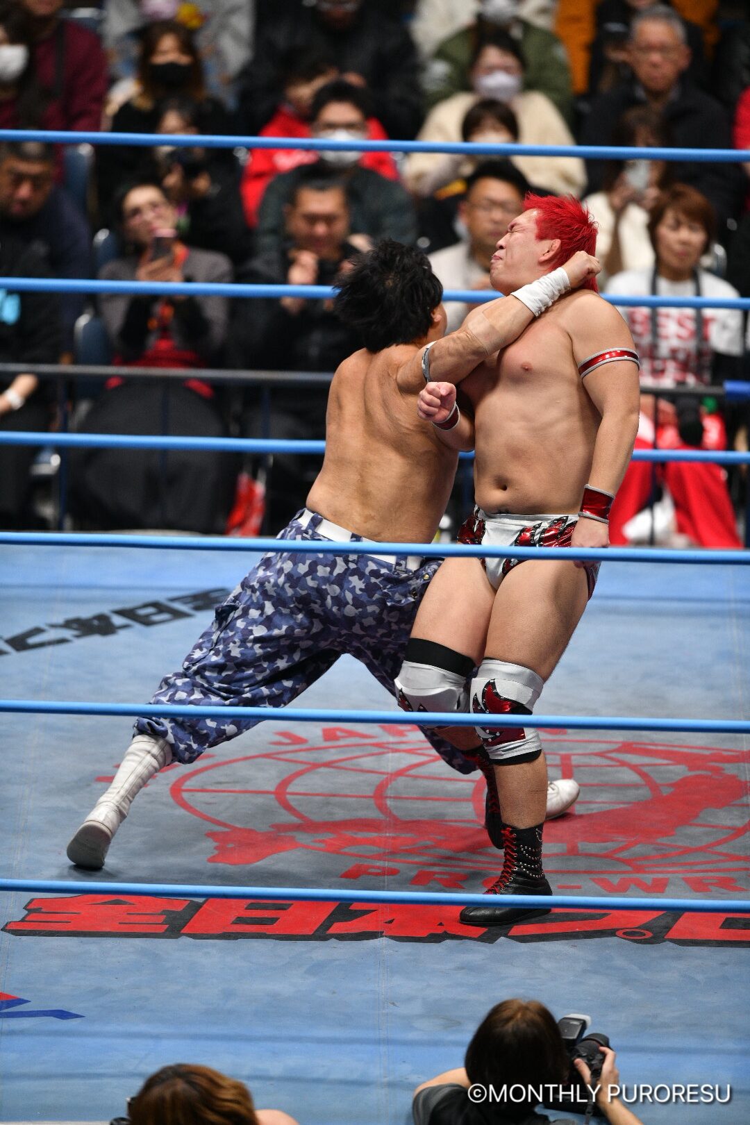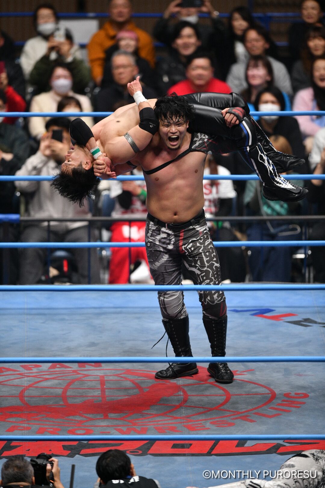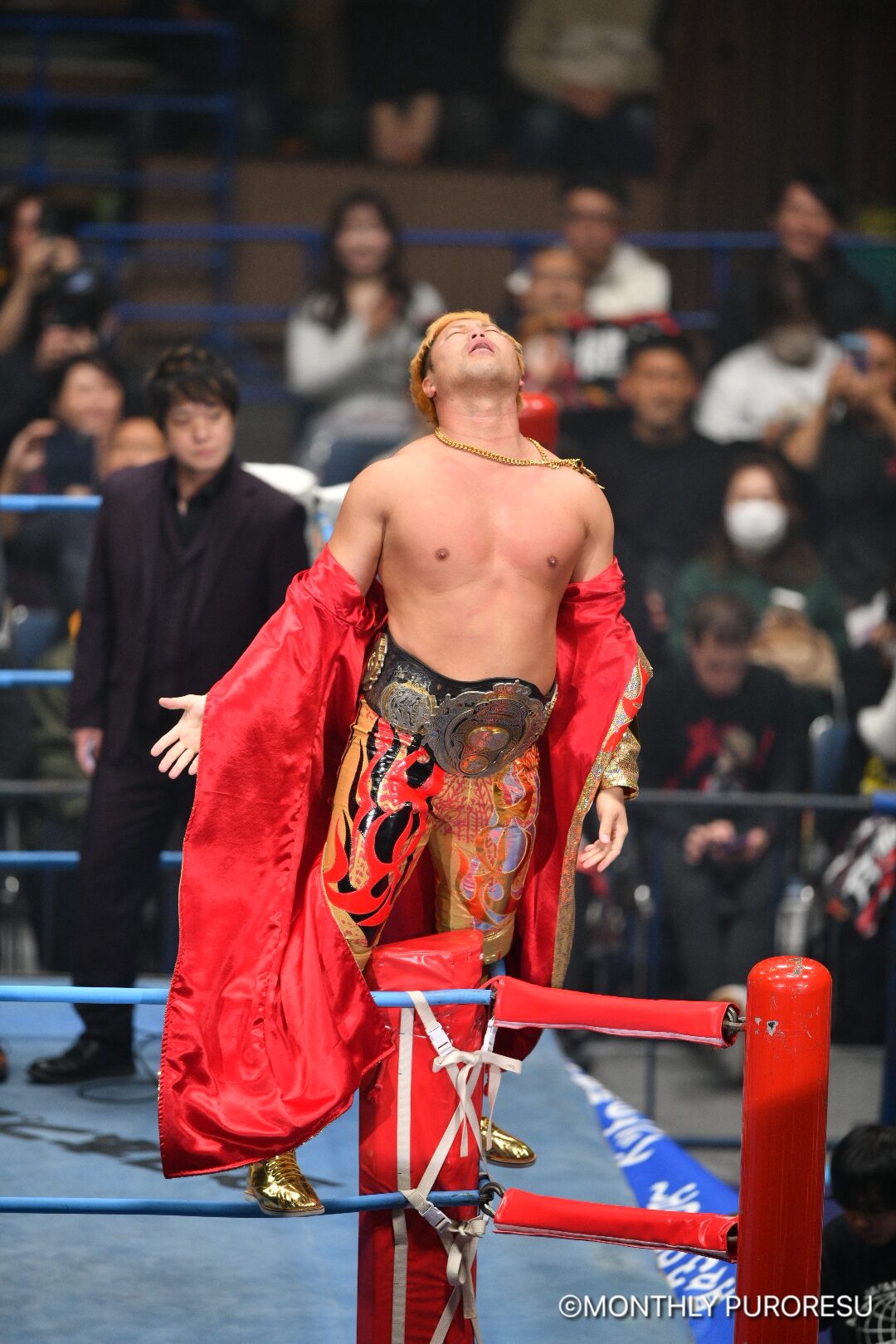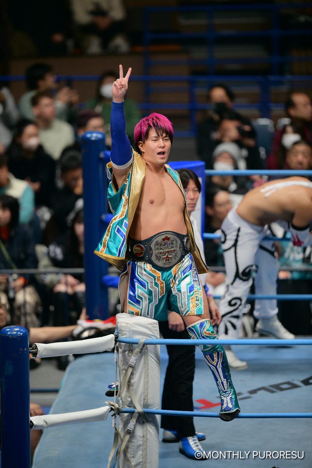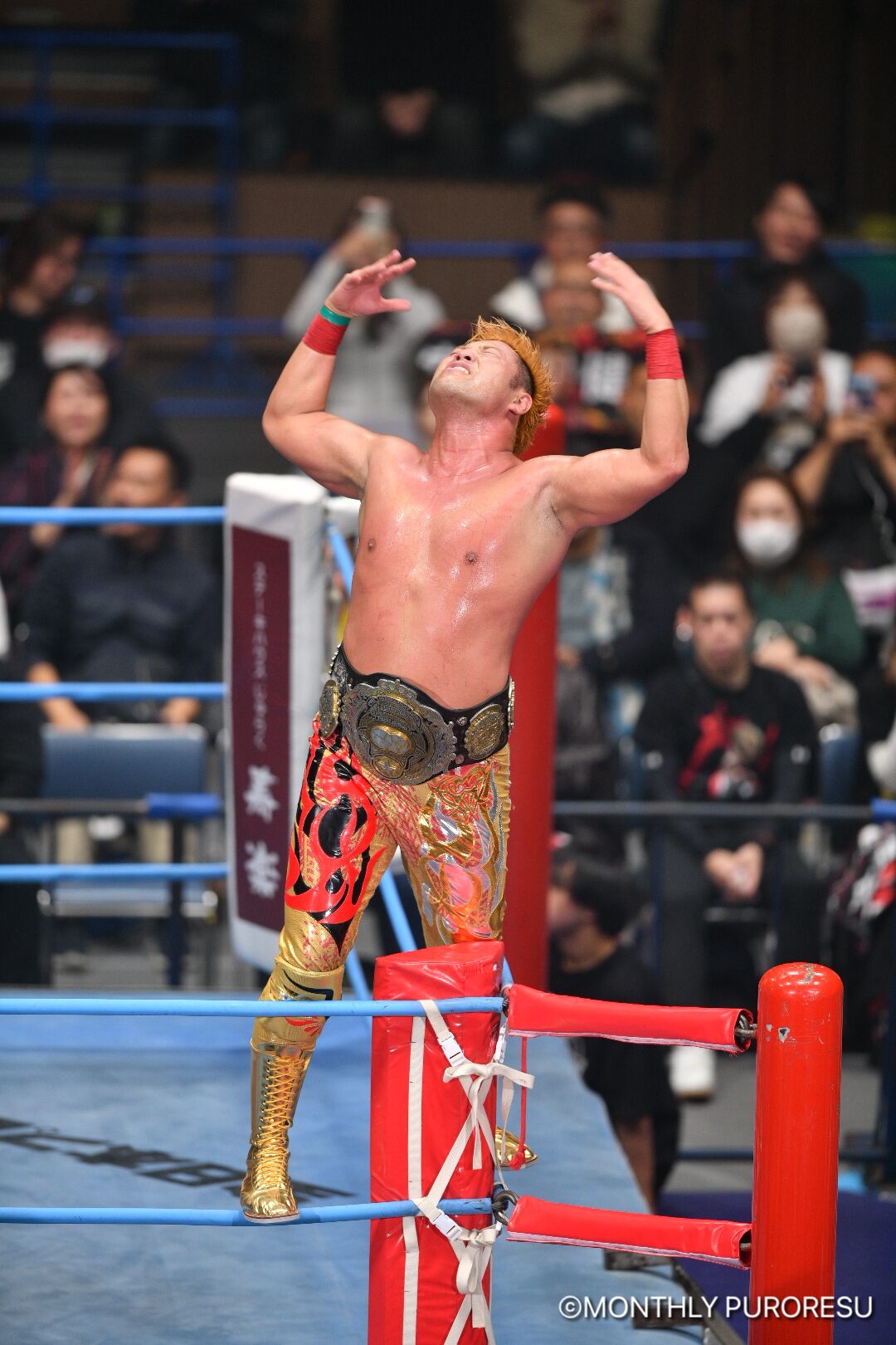 In the main event, Kento Miyahara defeated Yuma Anzai to retain his Triple Crown Championship. Match of the night as Miyahara and Anzai delivere together an oustanding performance that had the fans in the edge of their seats for over 20 minutes. Pure intensity ever changing as Anzai ended very close of dethroning Miyahara. After the match, Miyahara did a promo accepting that Anzai is a star now, but Miyahara is a superstar so they are not in the same level.