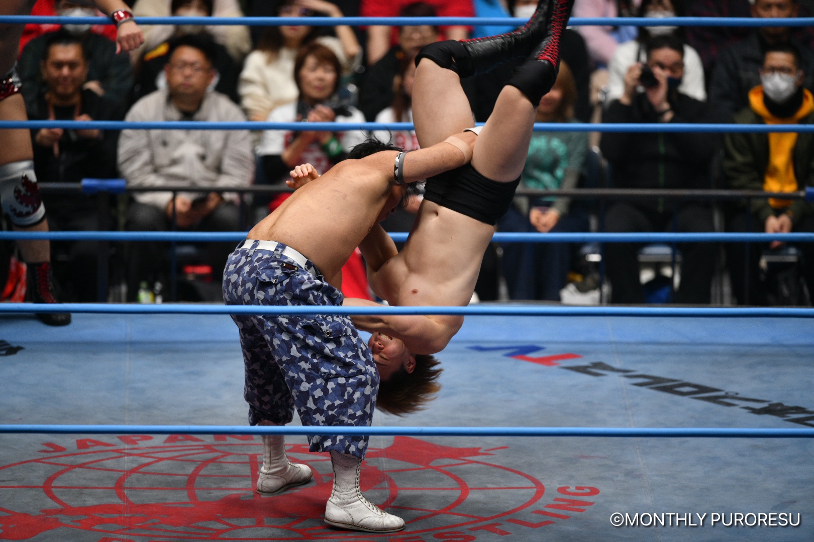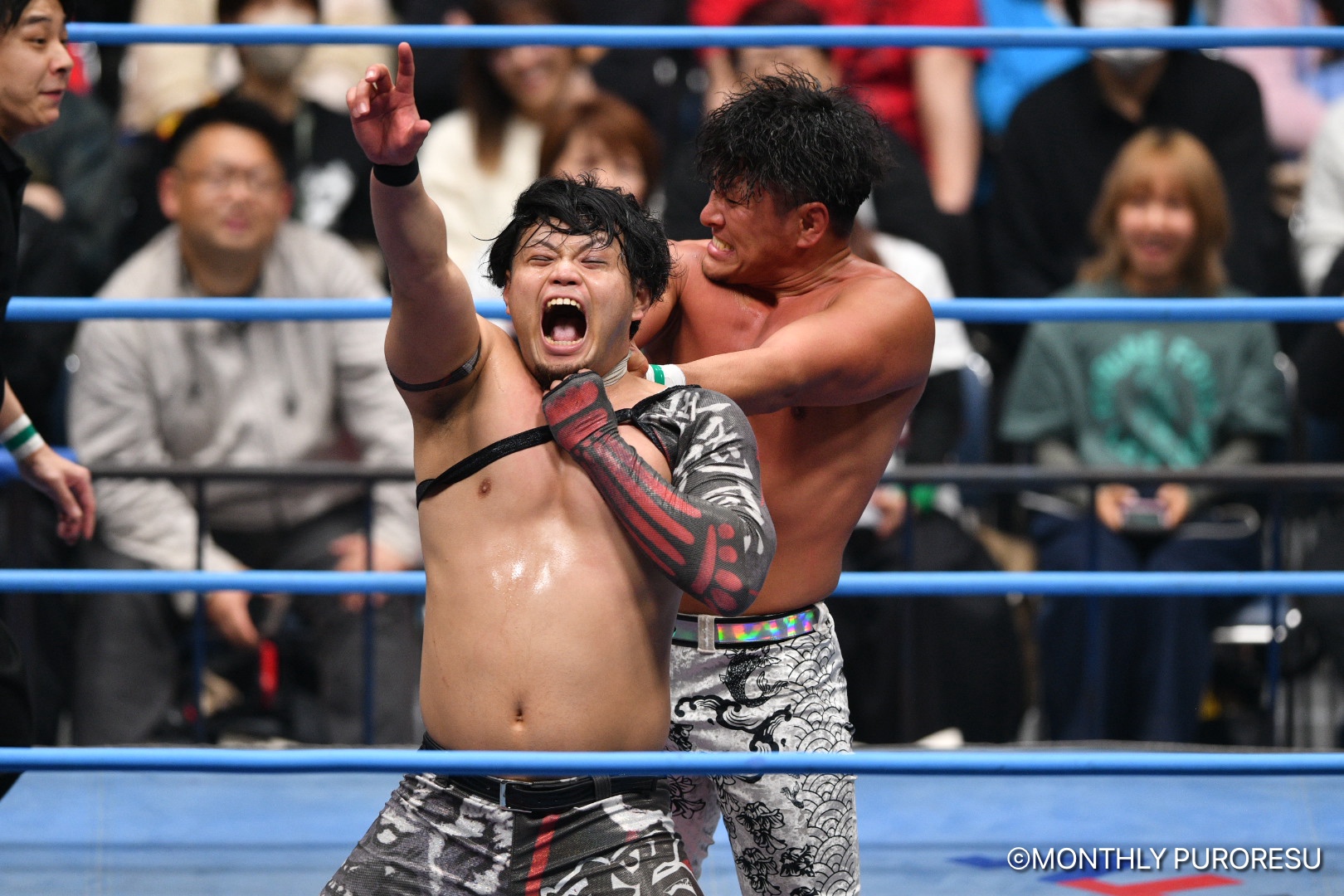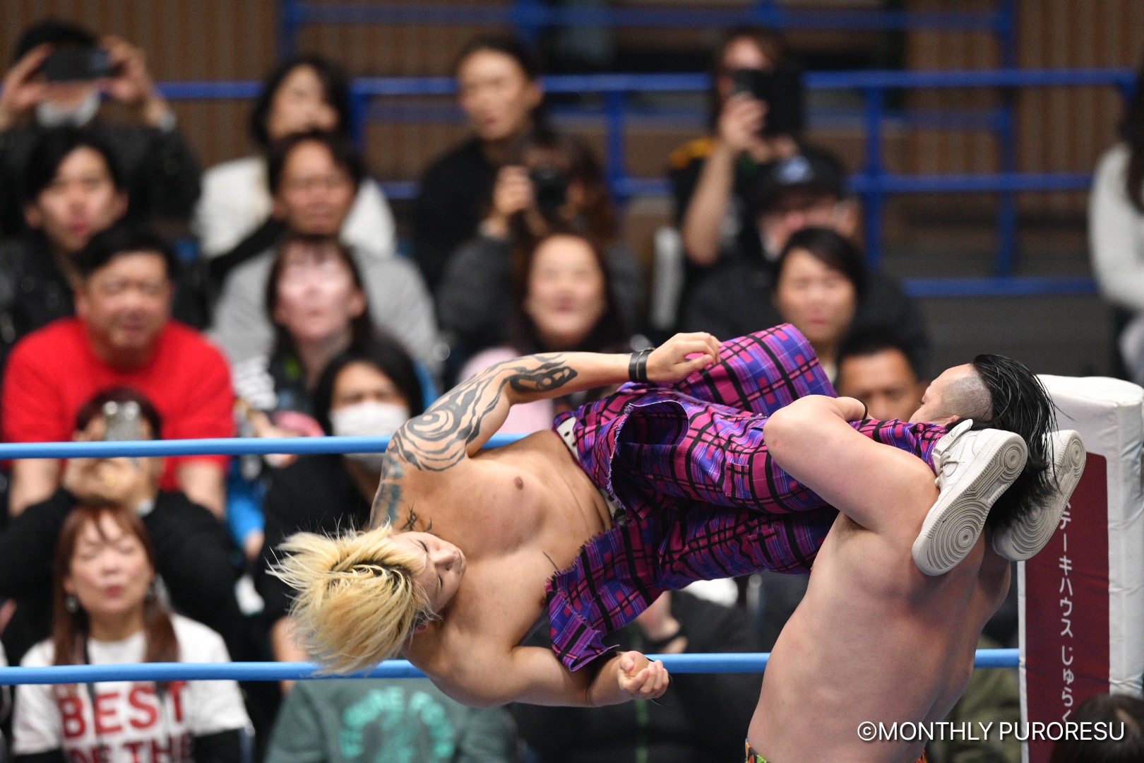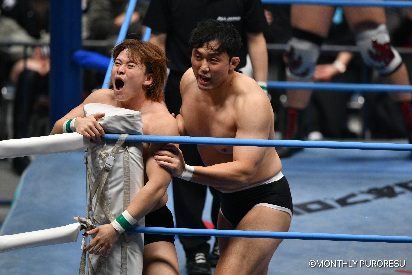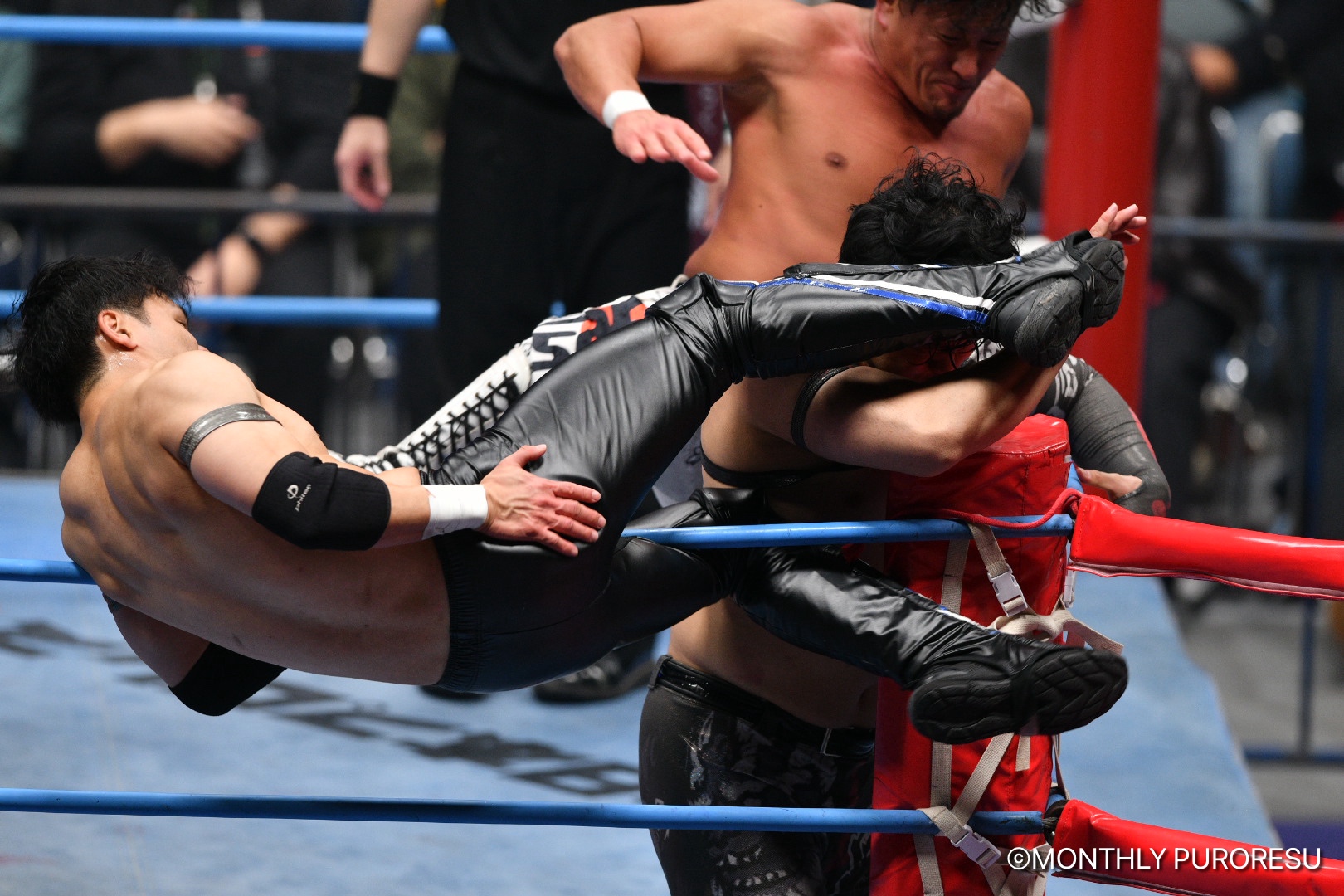 In the third match, Hideki Suzuki and Yuki Miyamoto defeated Ryuki Honda and Shota Kofuji. Suzuki dominated Kofuji with his technical background to secure the victory for his team. In the forth match, HAVOC stood tall over Hokuto-gun and the team of Titans of Calamity and Daisuke Sekimoto.