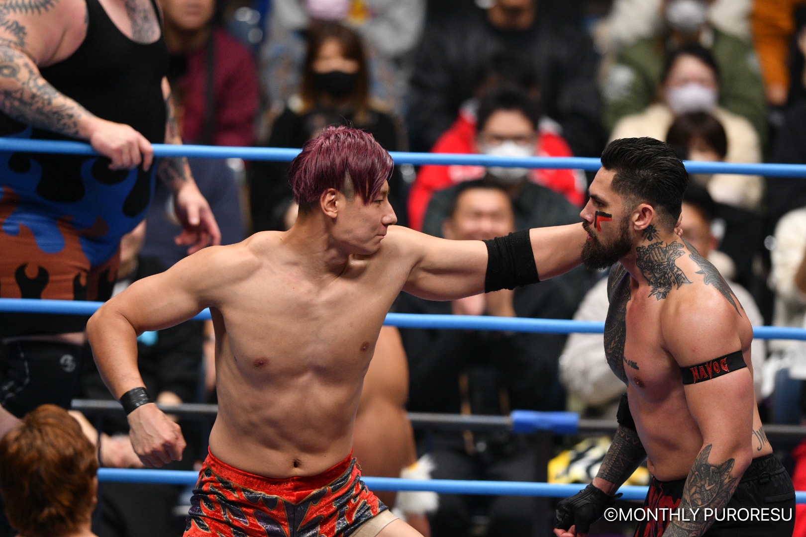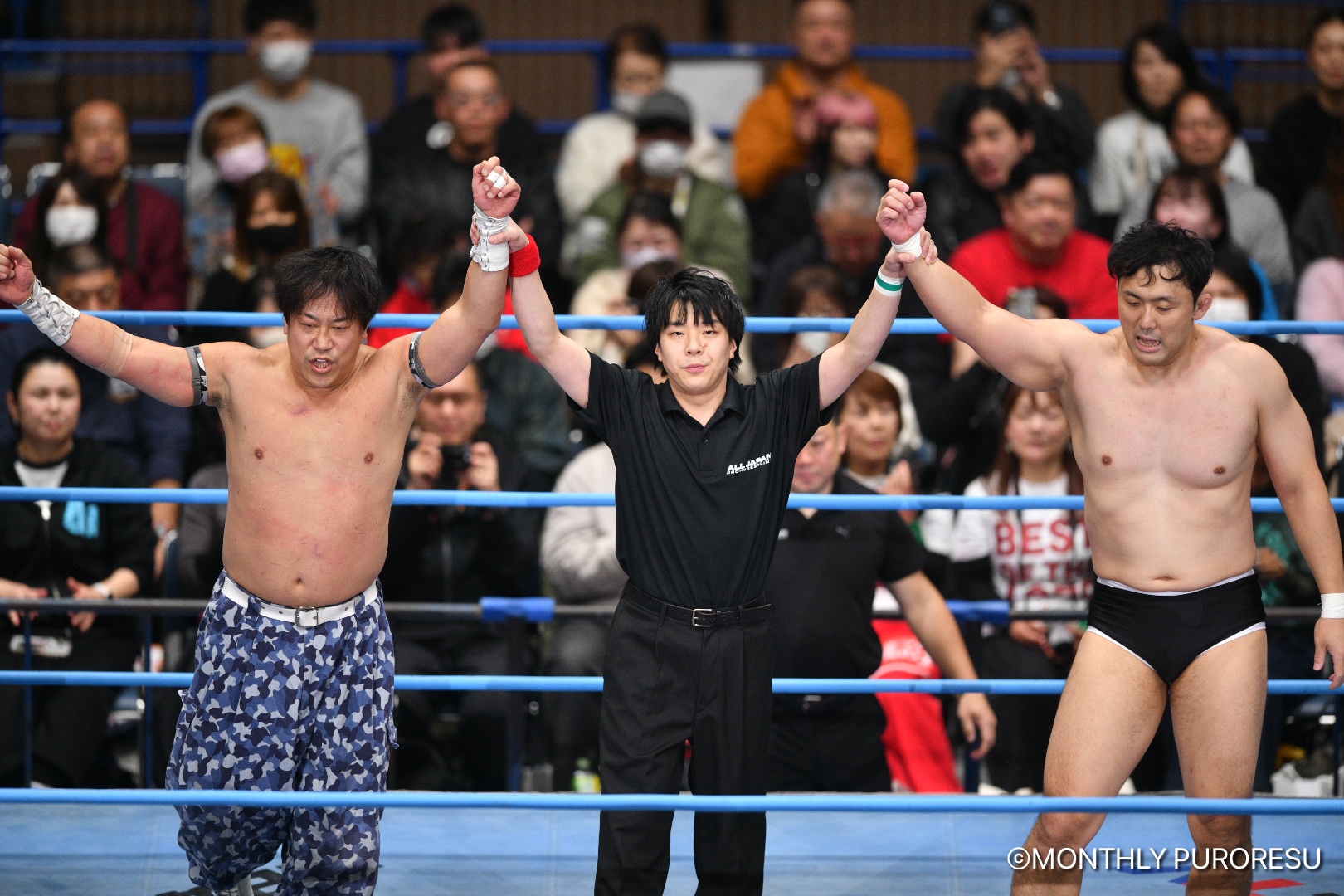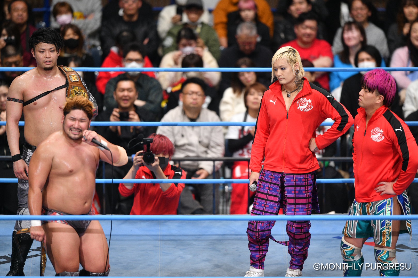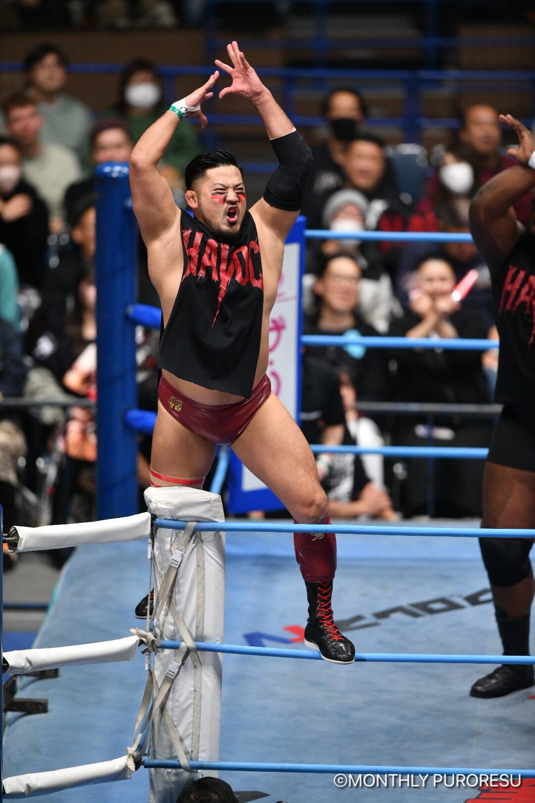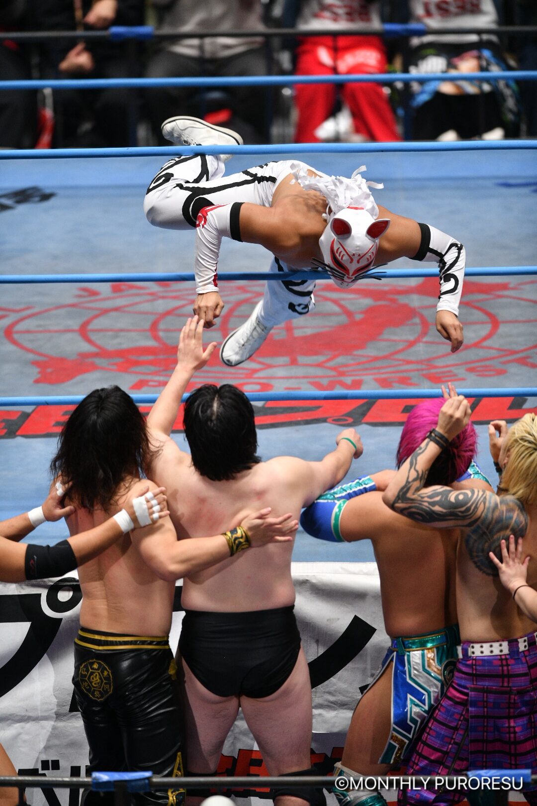 In the third match, Hideki Suzuki and Yuki Miyamoto defeated Ryuki Honda and Shota Kofuji. Suzuki dominated Kofuji with his technical background to secure the victory for his team. In the forth match, HAVOC stood tall over Hokuto-gun and the team of Titans of Calamity and Daisuke Sekimoto.
