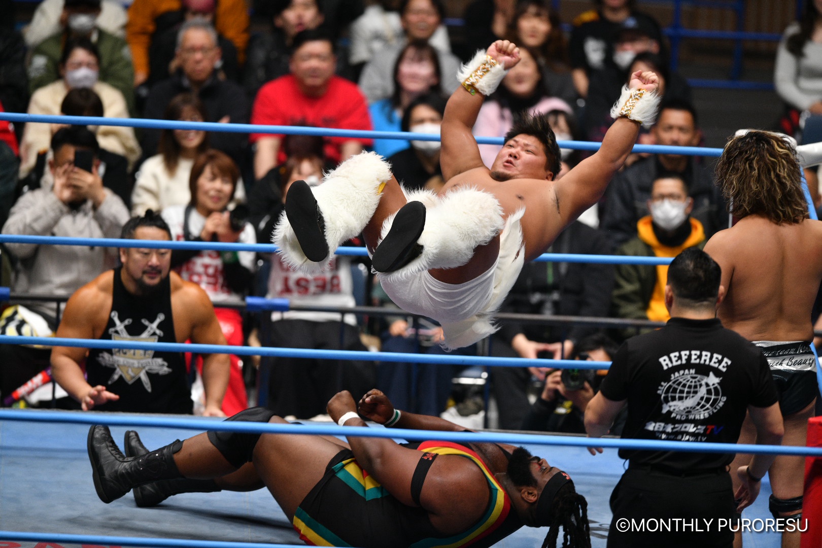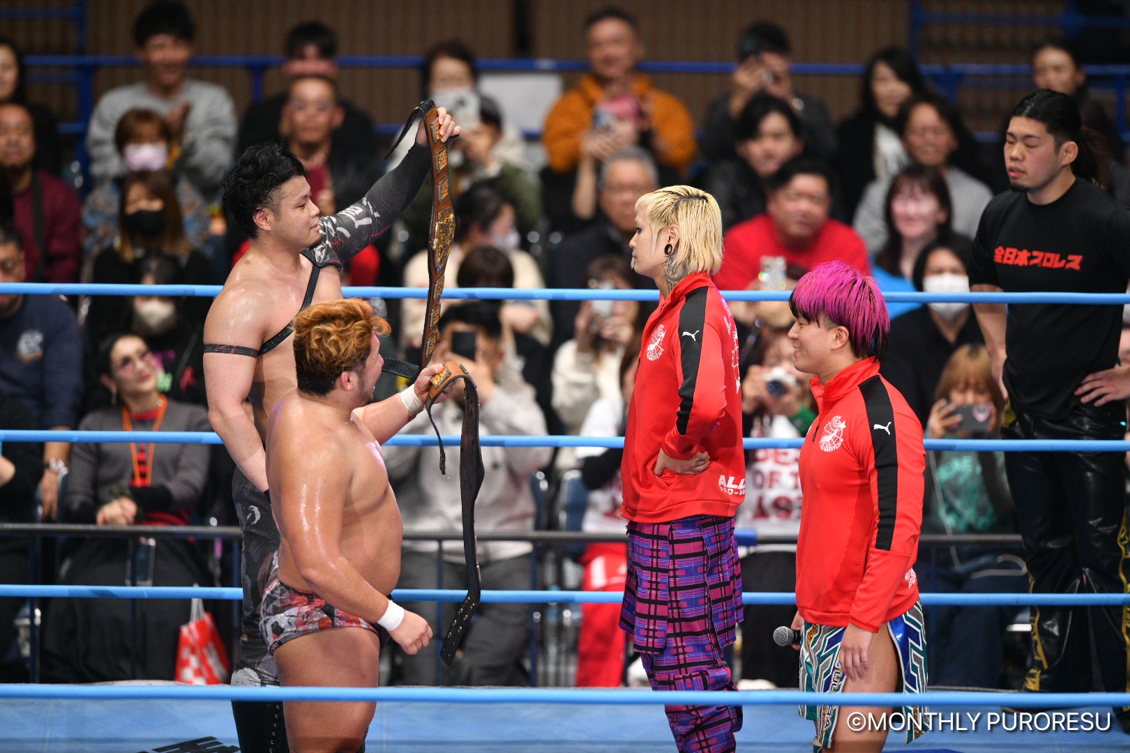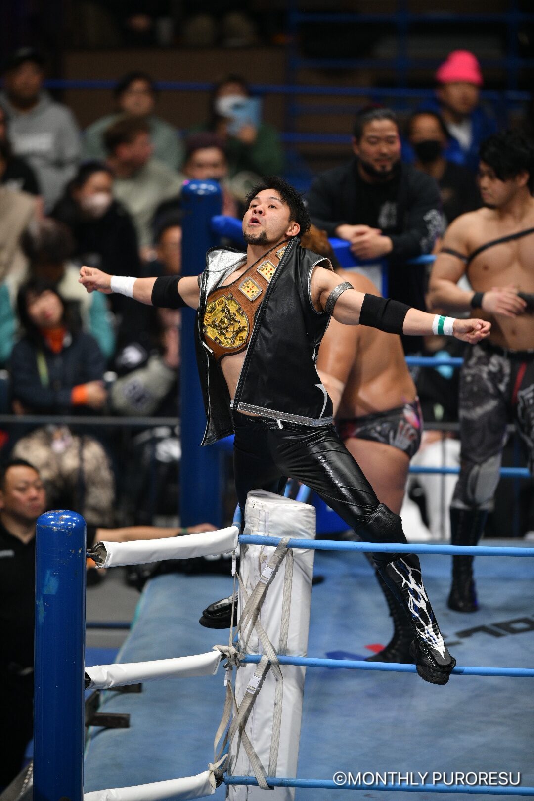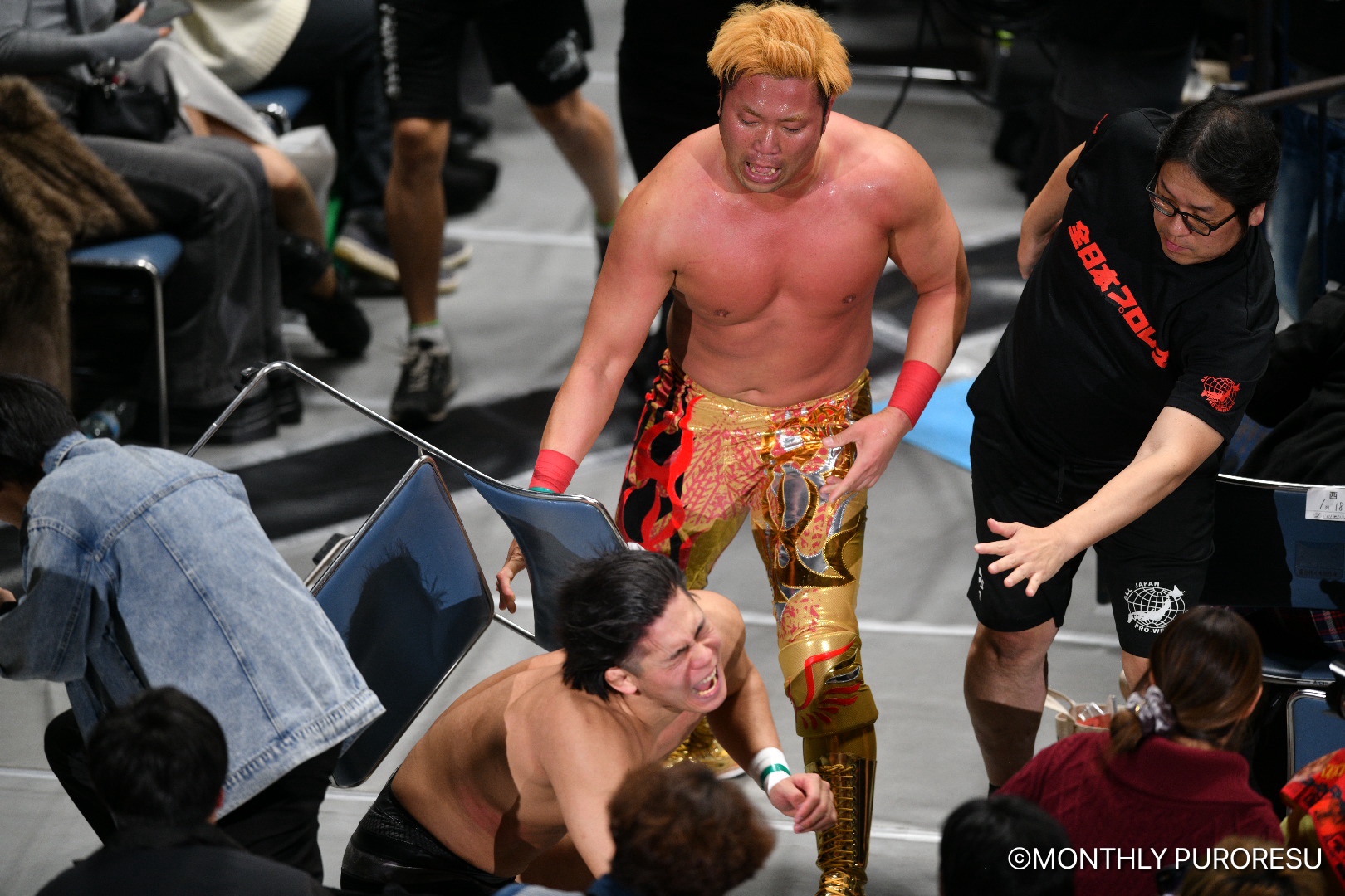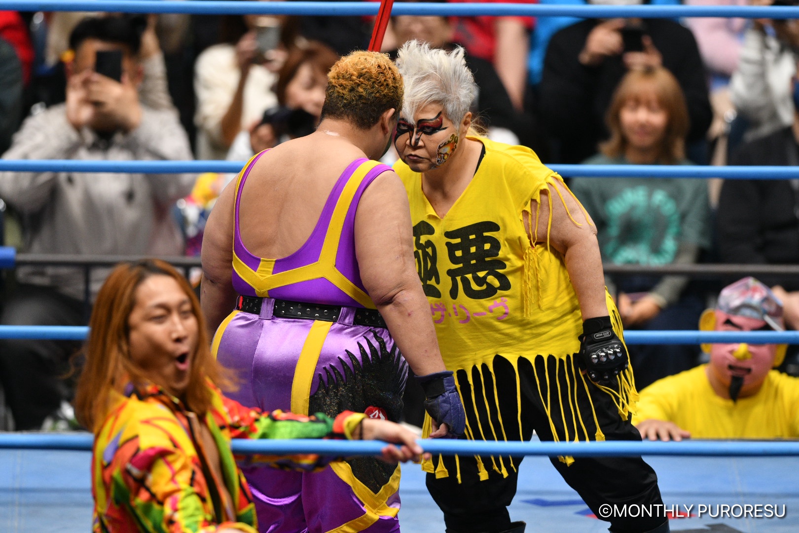 In the third match, Hideki Suzuki and Yuki Miyamoto defeated Ryuki Honda and Shota Kofuji. Suzuki dominated Kofuji with his technical background to secure the victory for his team. In the forth match, HAVOC stood tall over Hokuto-gun and the team of Titans of Calamity and Daisuke Sekimoto.