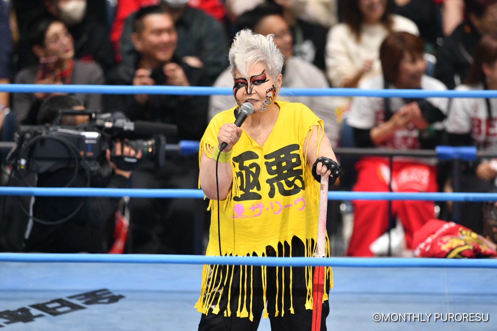 The opener of the show was a fun 8 men tag team match in which KURAMA bested Atsuki Aoyagi in the preview to their title match on January 3rd at Korakuen Hall. In the second match, Dump Matsumoto won the special Battle Royal after eliminating Kuroshi TOKYO Japan. During the match, Dump had an interaction with Aja Kong, which was one of the most celebrated moments by fans in attendance in Yoyogi.