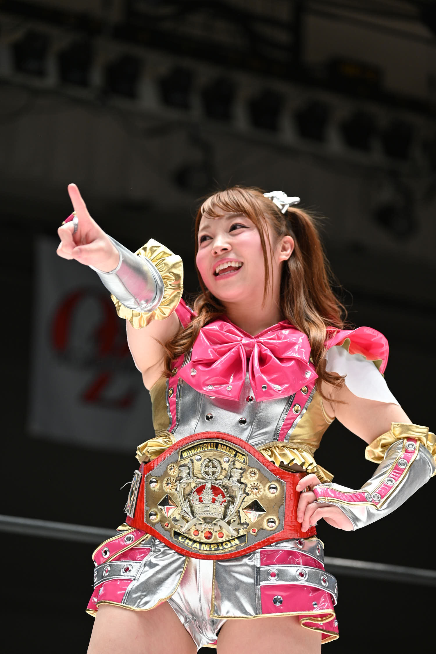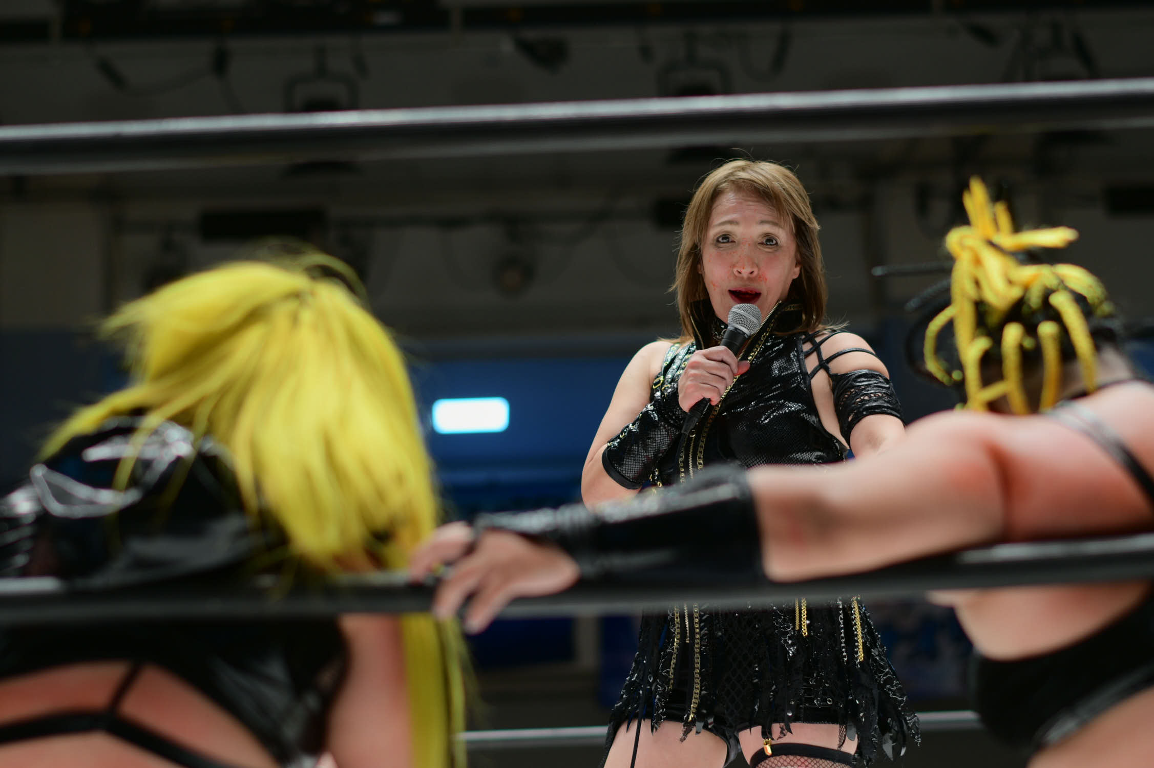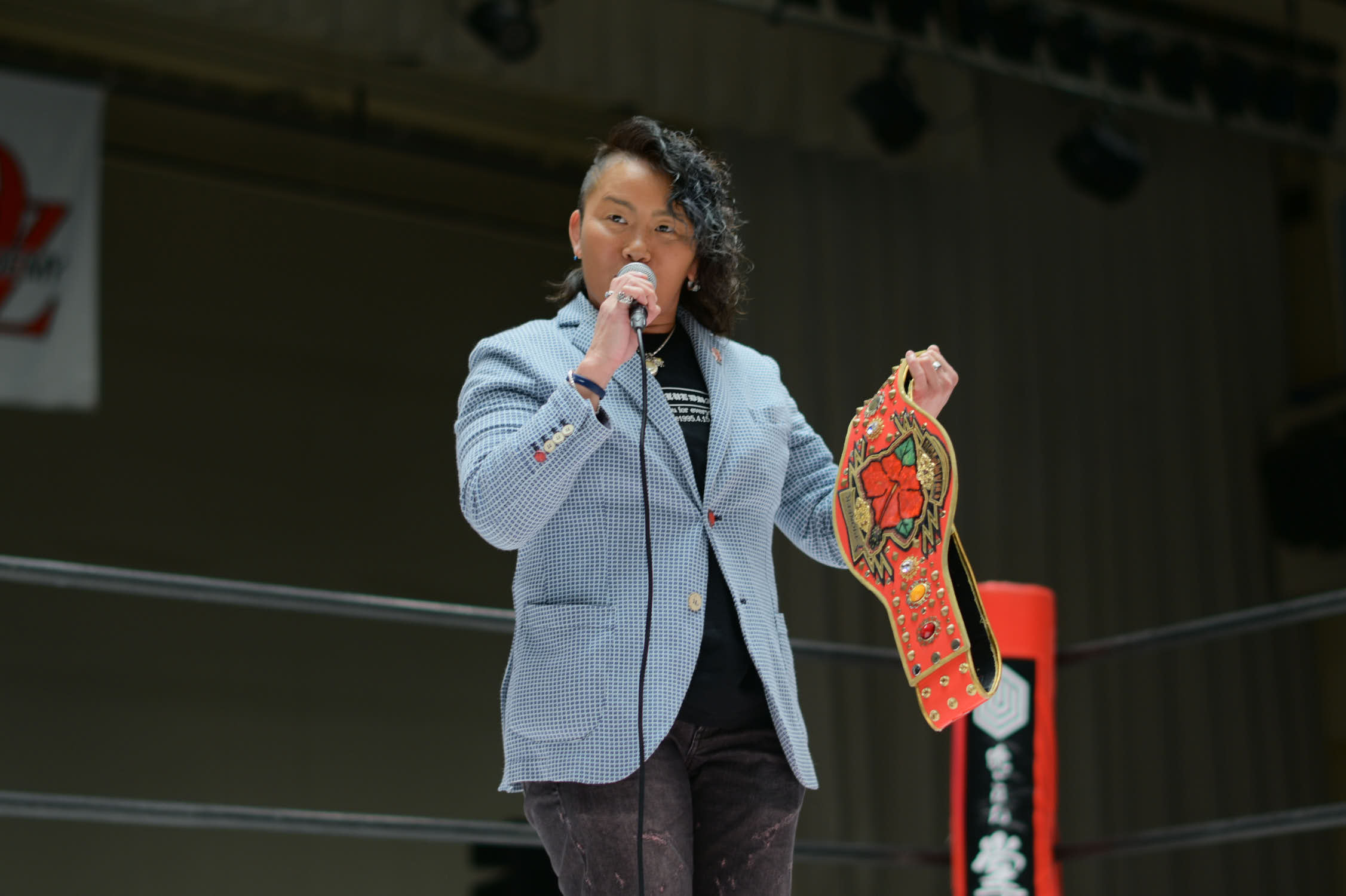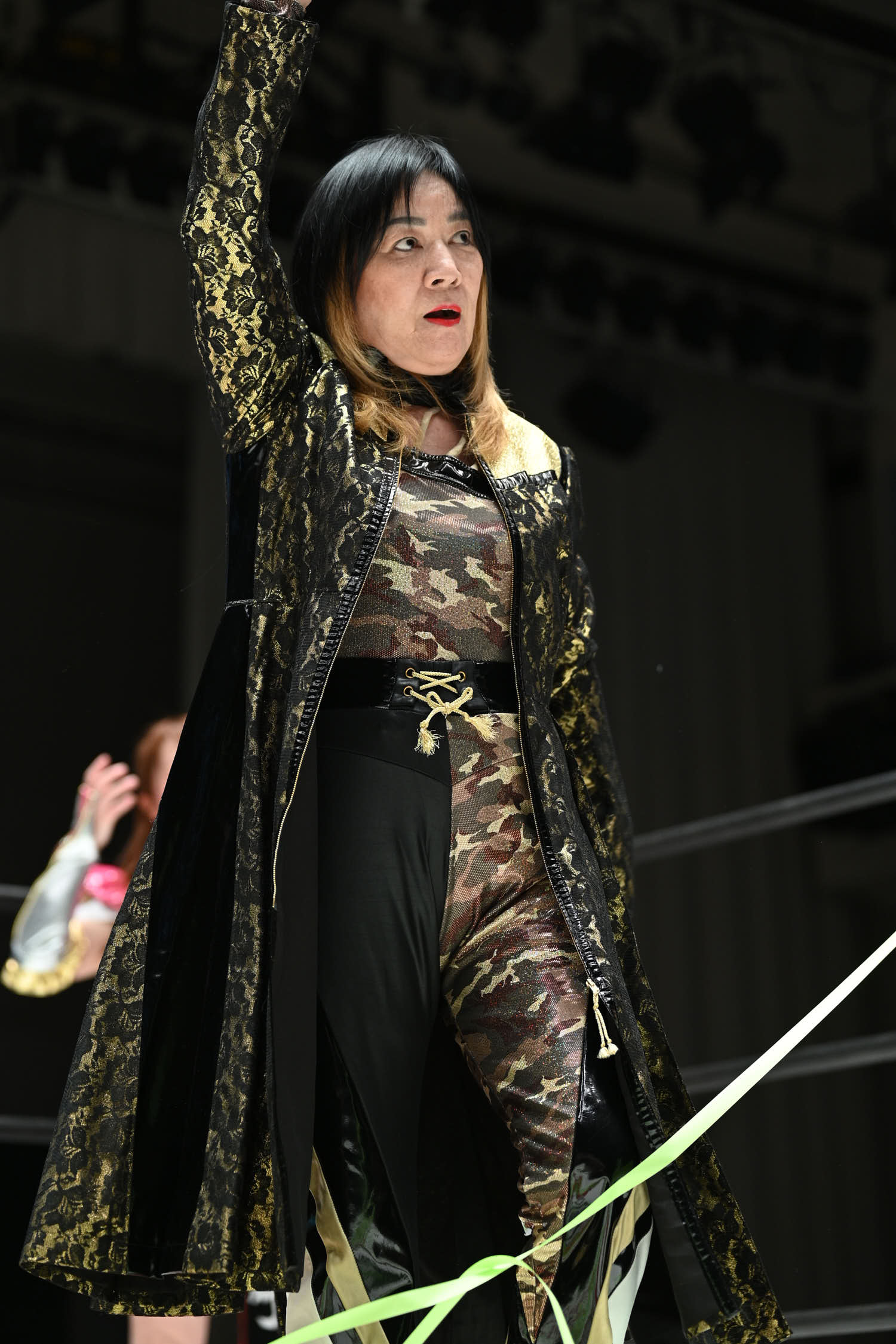 In the main event, Hiroyo Matsumoto and Zones defeated Red Energy (Miyuki Takase and Mika Iwata). Very dynamic match where Zones especially showed how much she has grown in the last year. Matsumoto pinned Takase to secure the victory and retain the gold. After the match, different teams came out ot the ring and asked for a shot at the belts. Matsumoto accepted but to decide the challenger they will fight as units before.