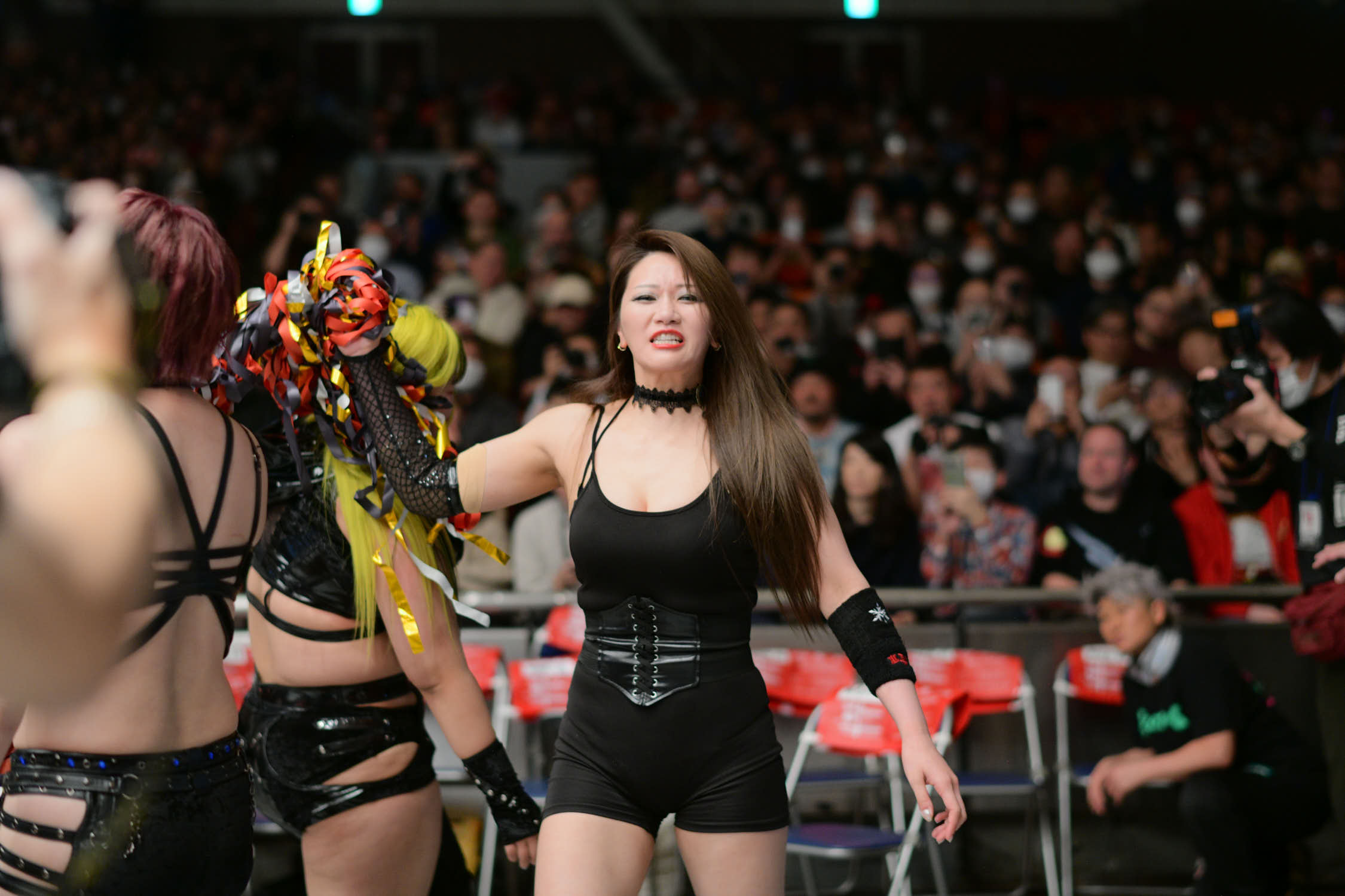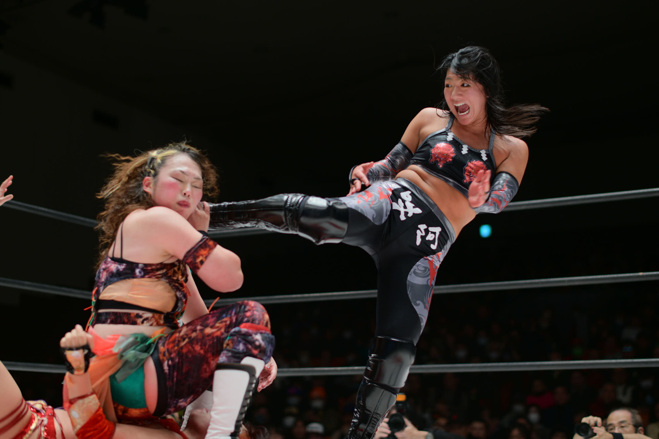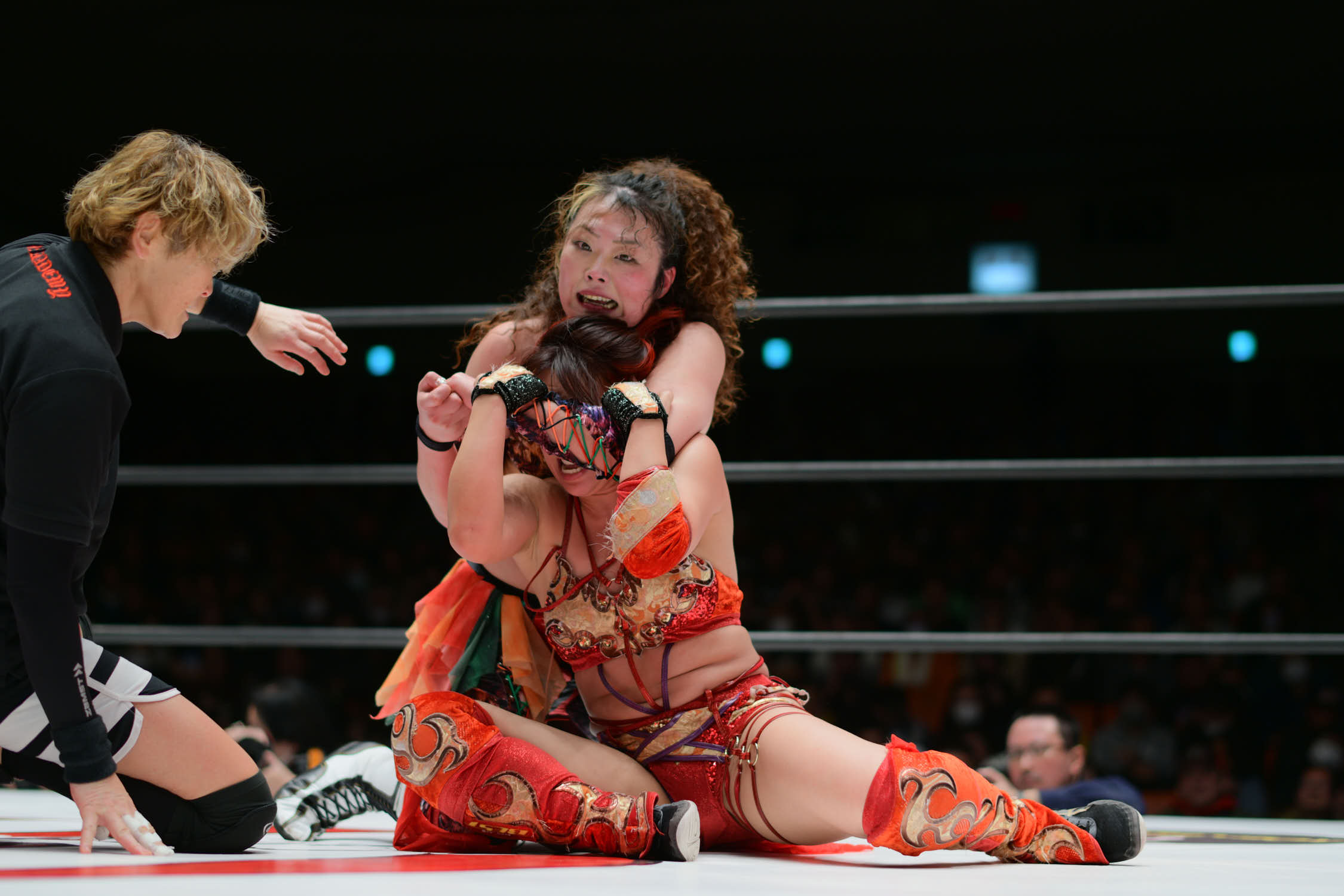 OZ Academy presented a very fun trios opener that got the audience hooked on the show from minute 1. The tricks of Kaori Yoneyama, Momoka Hanazono and Ram Kaicho put the team of Jaguar Yokota, Misa Kagura and Tsubasa Kuragaki in more than one tight spot. Yoneyema pinned Misa to secure the victory for her team.