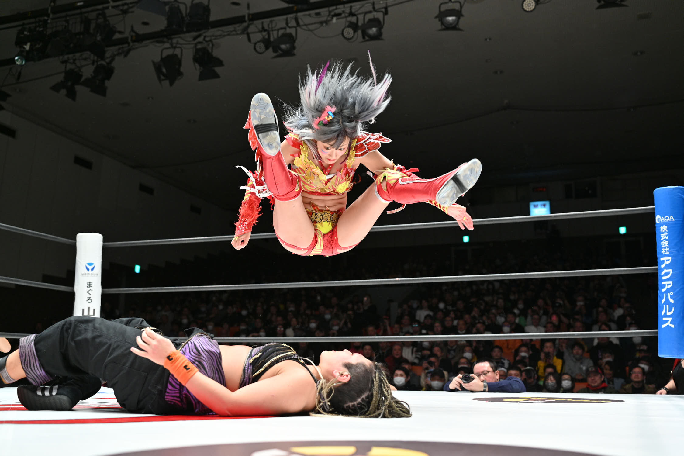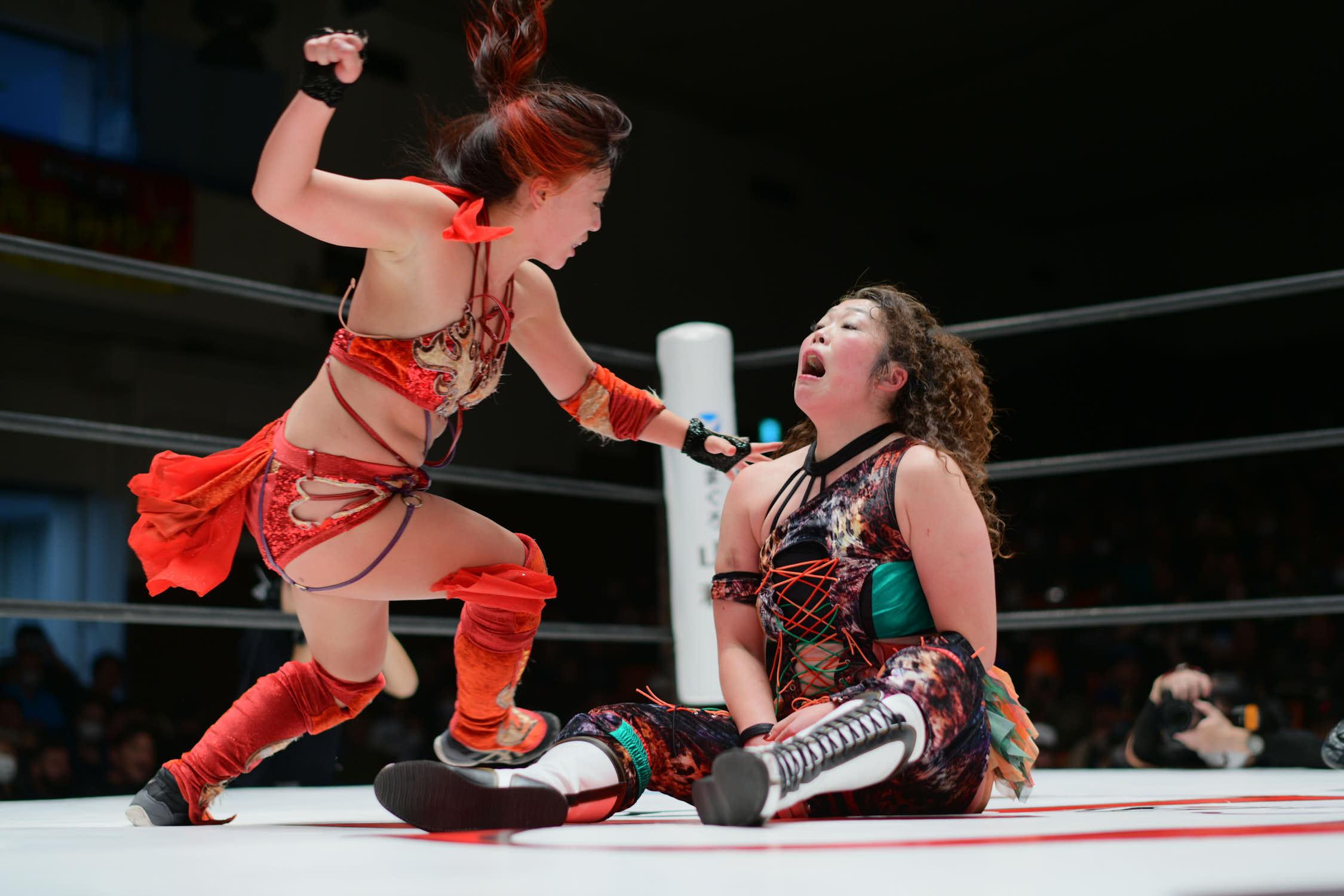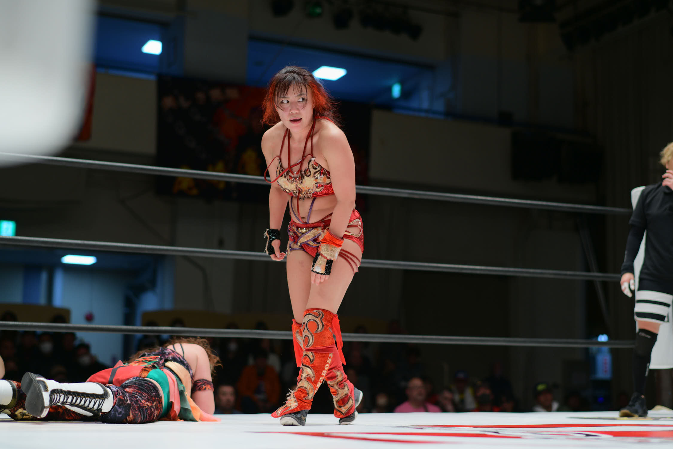 Sareee and Sho (Kakeru Sekiguchi) went to war in a singles match at Korakuen Hall. “The Sun God” pinned Sho after a Diving Double Footstomp. During the match, Maya Yukihi attacked Sareee to help Sho. But, it wasn’t enough to stop Sareee.