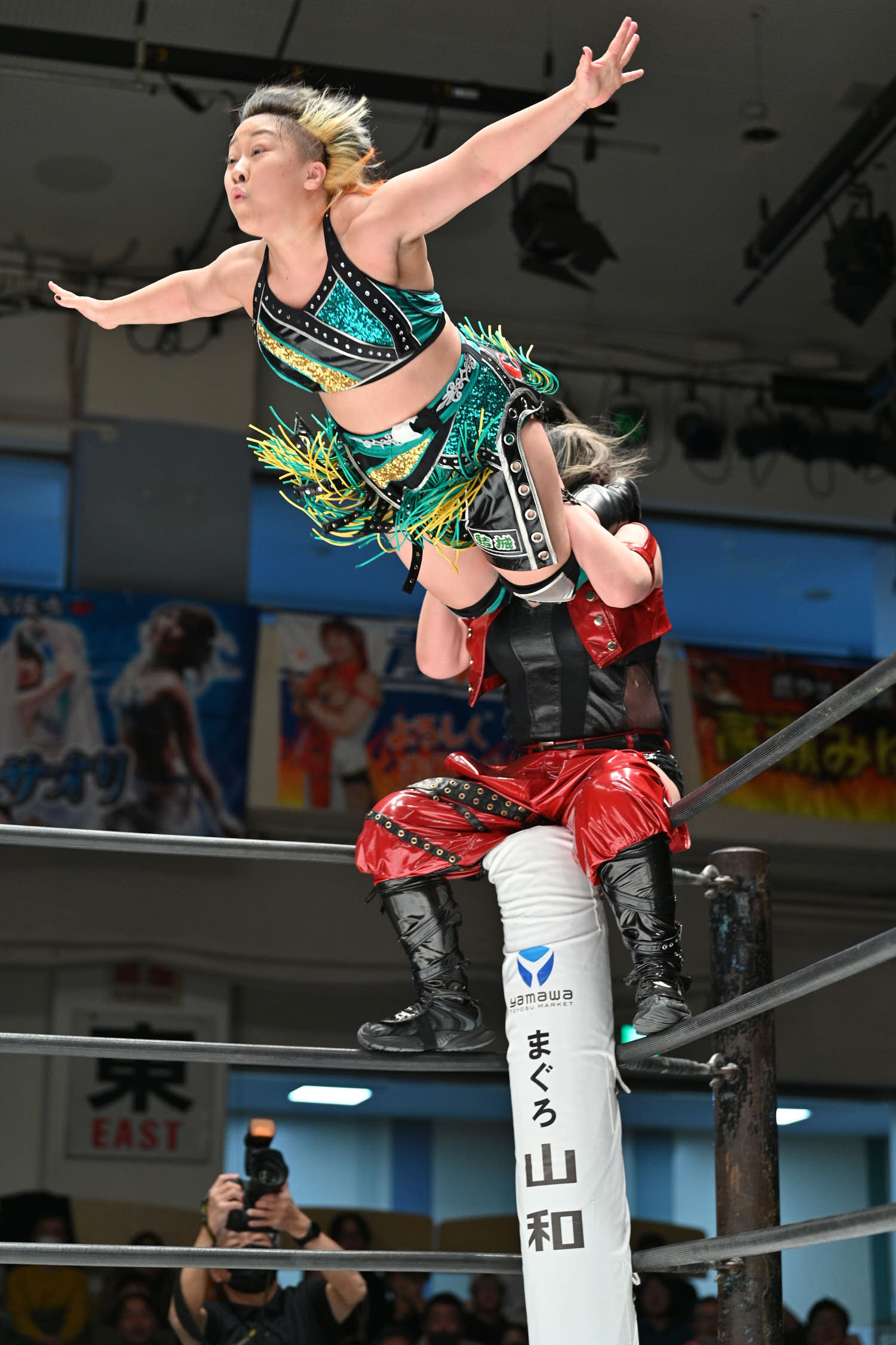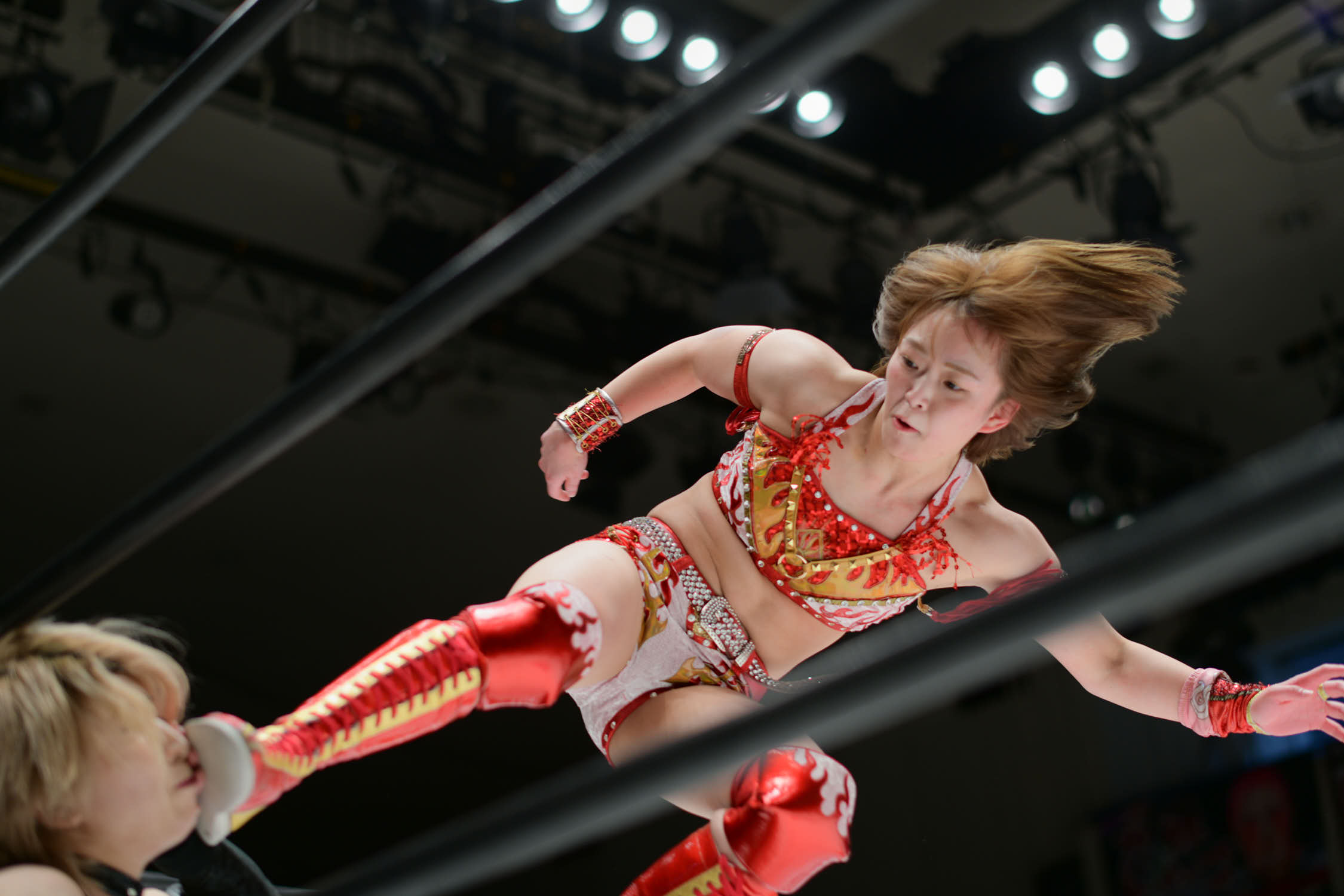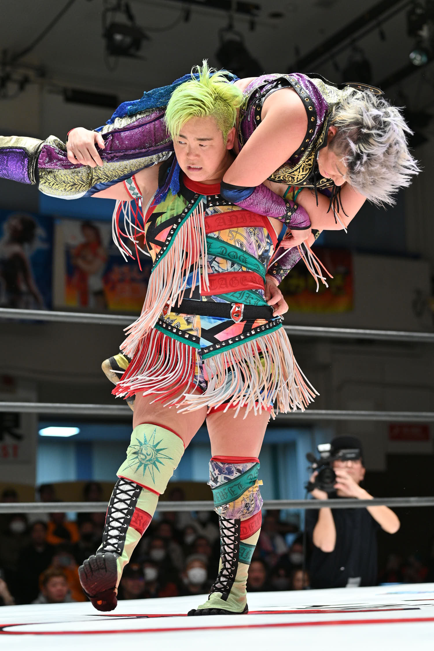 Sareee and Sho (Kakeru Sekiguchi) went to war in a singles match at Korakuen Hall. “The Sun God” pinned Sho after a Diving Double Footstomp. During the match, Maya Yukihi attacked Sareee to help Sho. But, it wasn’t enough to stop Sareee.