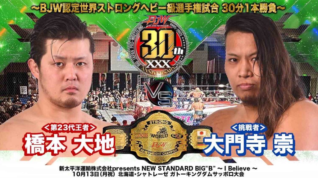 On Oct 13th, Daimonji has the opportunity to win the biggest title of his career as he will challenge the current BJW World Strong Heavyweight Champion Daichi Hashimoto in Sapporo.