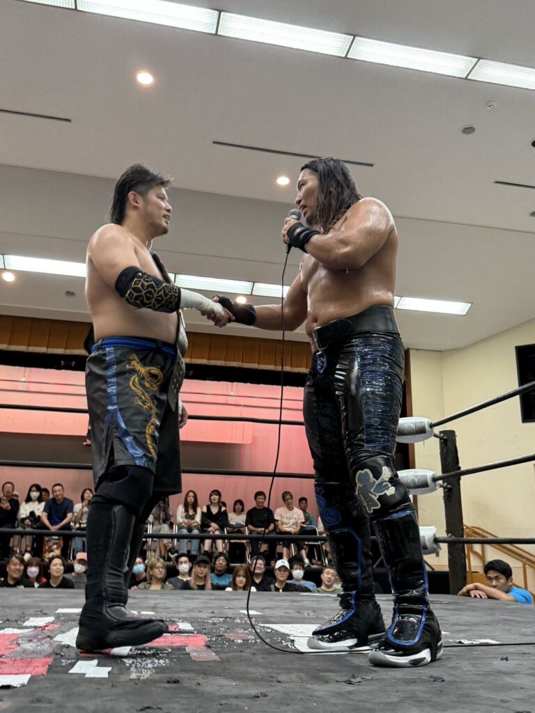 Sekimoto-san is a very special wrestler to me. The reason I started wrestling in BJW was because I had a singles match with him at a show in 2021. That led me, while living in Osaka at the time, to start appearing in BJW’s Osaka events. Now I’ve moved to Tokyo and regularly appear in various BJW shows. Teaming with Sekimoto-san is the most fun tag team I’ve ever been part of in my career. We respect each other, constantly share new ideas, and, above all, enjoy pro wrestling to the fullest — he’s the best partner I could ask for. Even though our championship reign was short, I think our team has huge potential. My goal is to make us a tag team that competes not only in BJW but across all promotions.