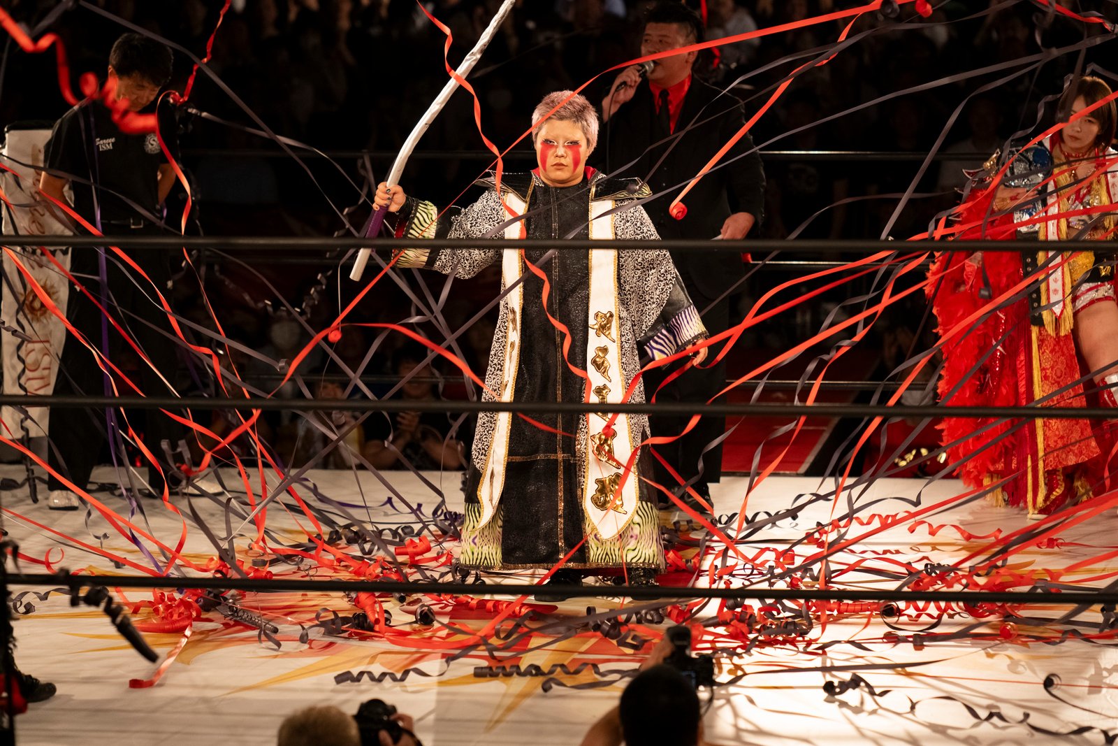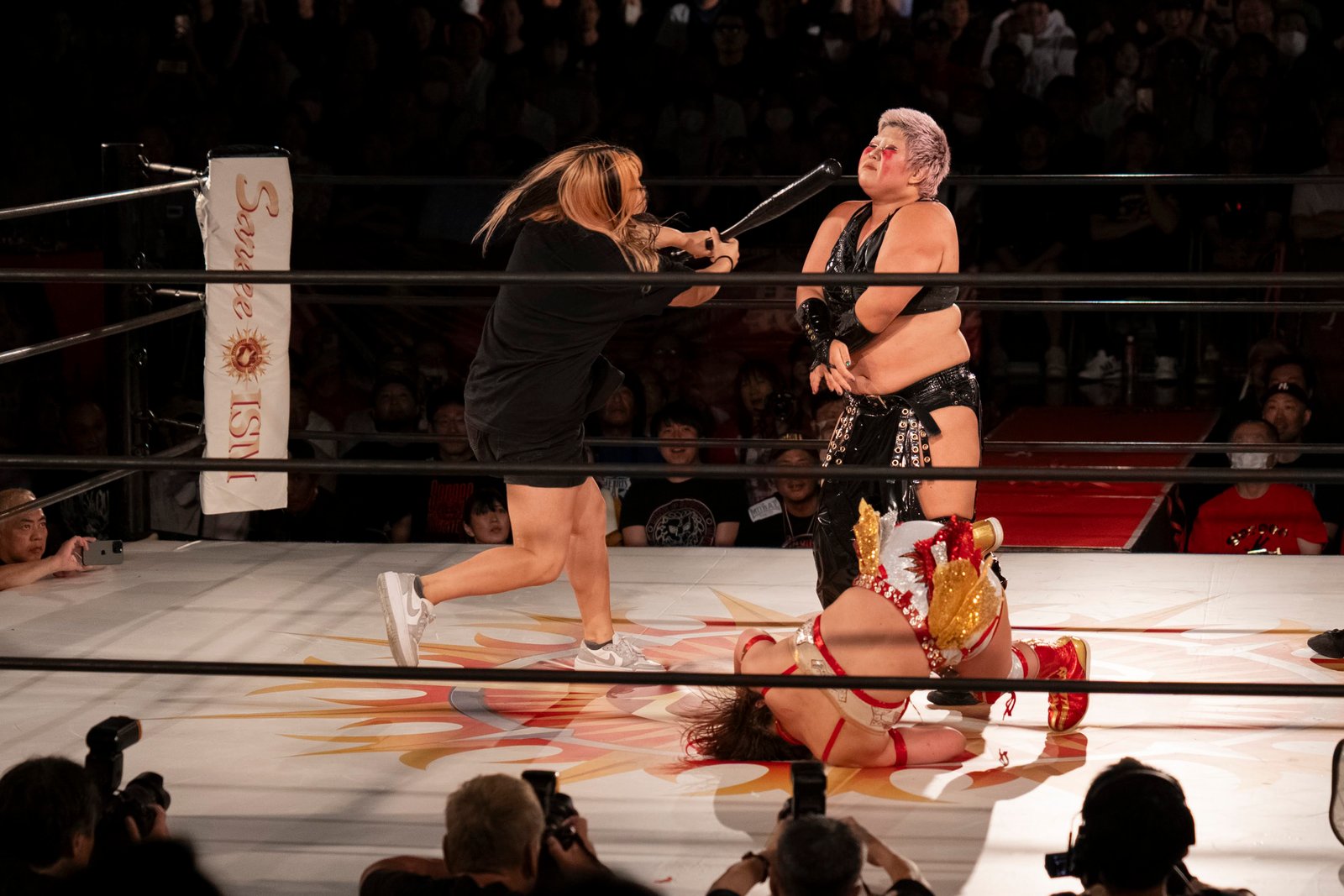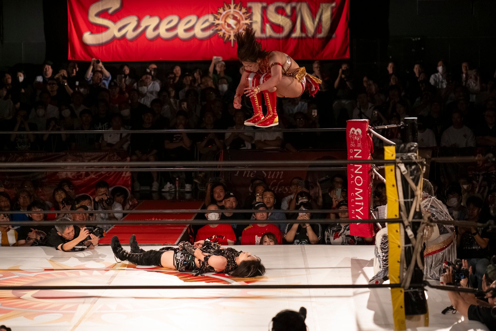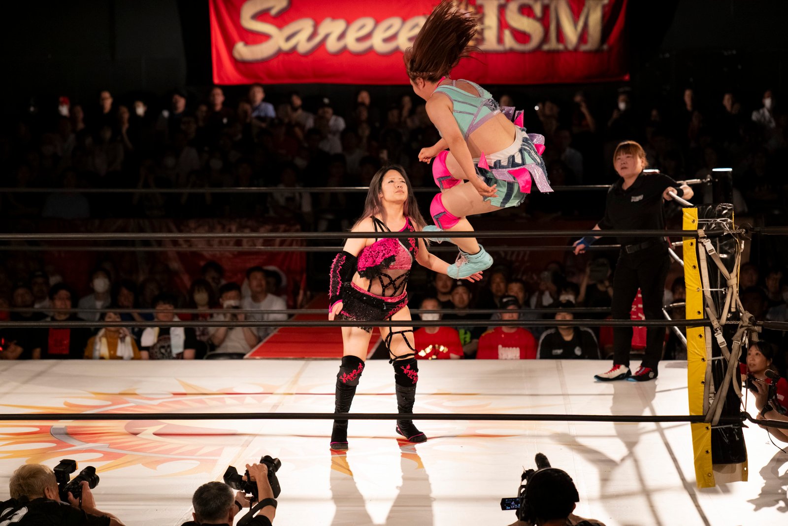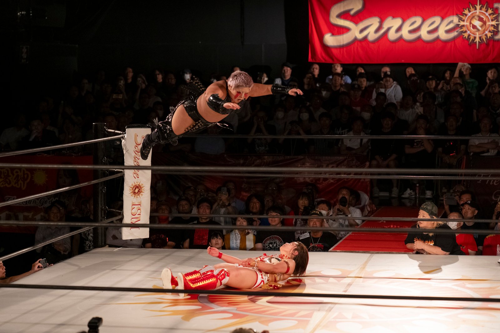 TOKYO – The red towels waved with religious fervor as Sareee made her entrance to address the crowd at Shinjuku FACE, and it wasn’t the sound of idol worship but the passionate roars of wrestling purists hungry for something real. 599 fans packed the venue Monday night, their Sareee t-shirts creating a sea of defiance against her opponents – emblematic of the glittery, choreographed spectacle that’s dominated Joshi puroresu for the better part of a decade.