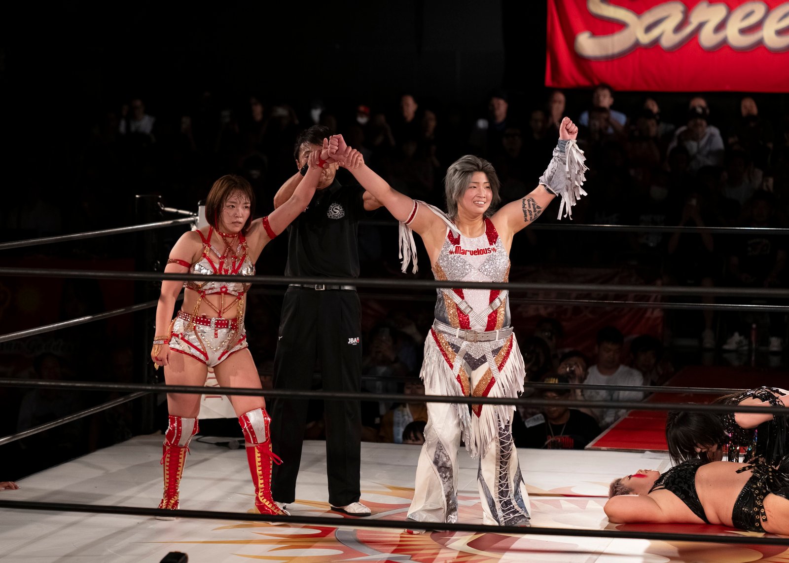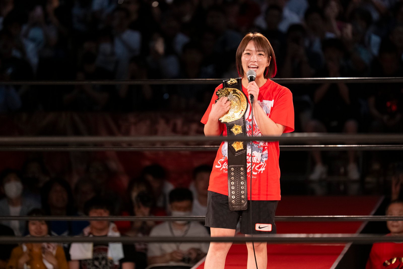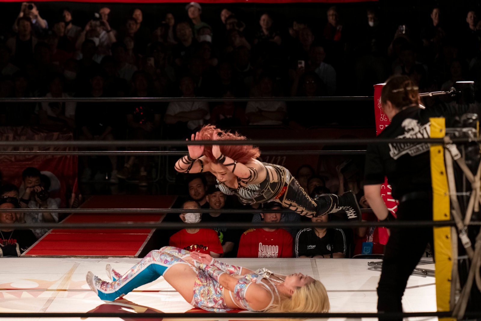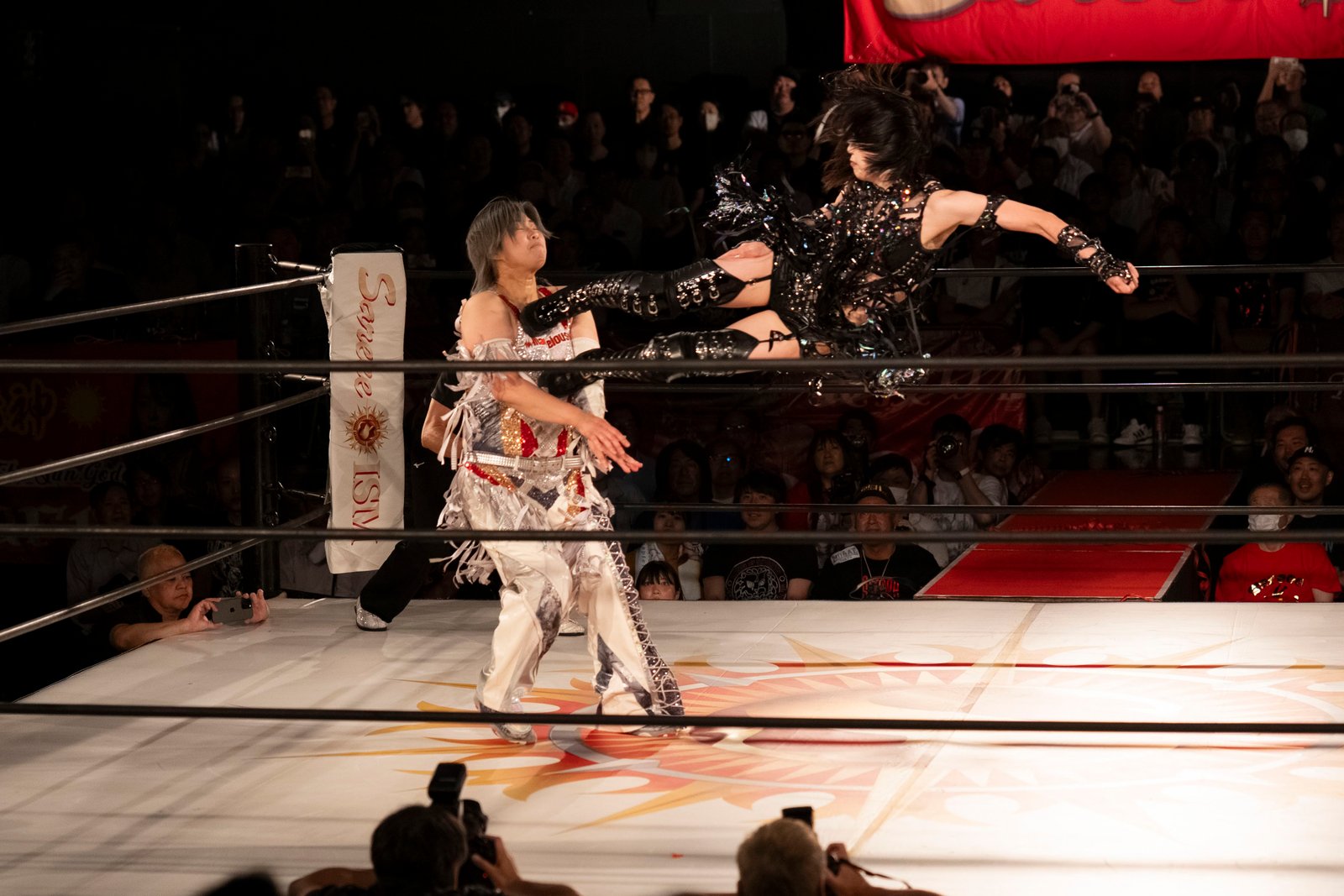 TOKYO – The red towels waved with religious fervor as Sareee made her entrance to address the crowd at Shinjuku FACE, and it wasn’t the sound of idol worship but the passionate roars of wrestling purists hungry for something real. 599 fans packed the venue Monday night, their Sareee t-shirts creating a sea of defiance against her opponents – emblematic of the glittery, choreographed spectacle that’s dominated Joshi puroresu for the better part of a decade.