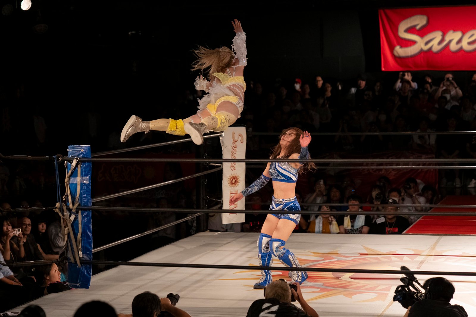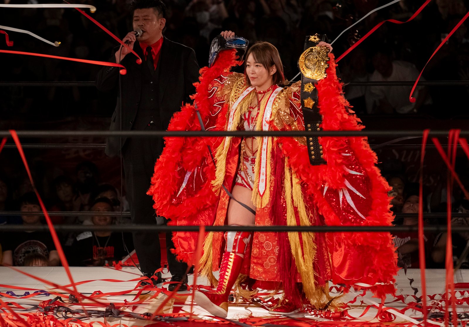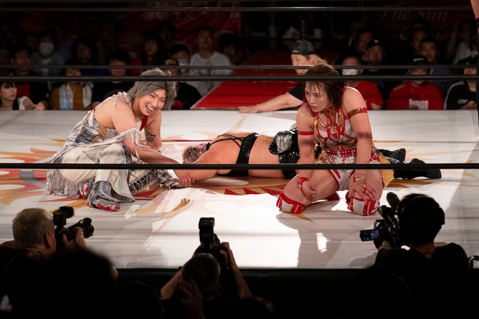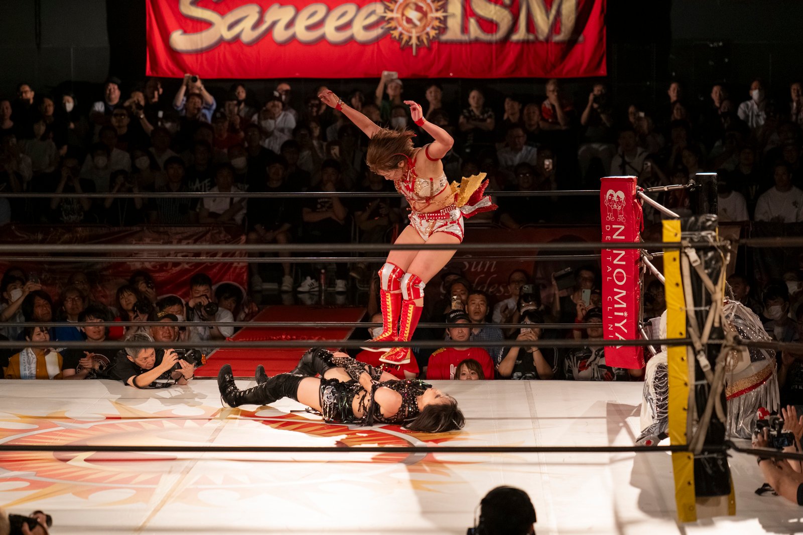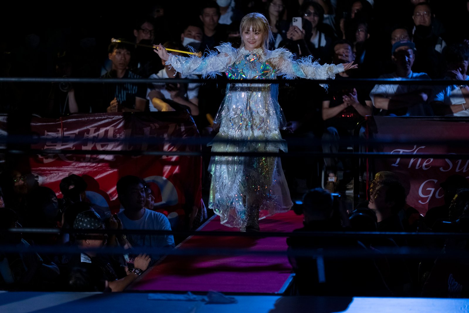 TOKYO – The red towels waved with religious fervor as Sareee made her entrance to address the crowd at Shinjuku FACE, and it wasn’t the sound of idol worship but the passionate roars of wrestling purists hungry for something real. 599 fans packed the venue Monday night, their Sareee t-shirts creating a sea of defiance against her opponents – emblematic of the glittery, choreographed spectacle that’s dominated Joshi puroresu for the better part of a decade.