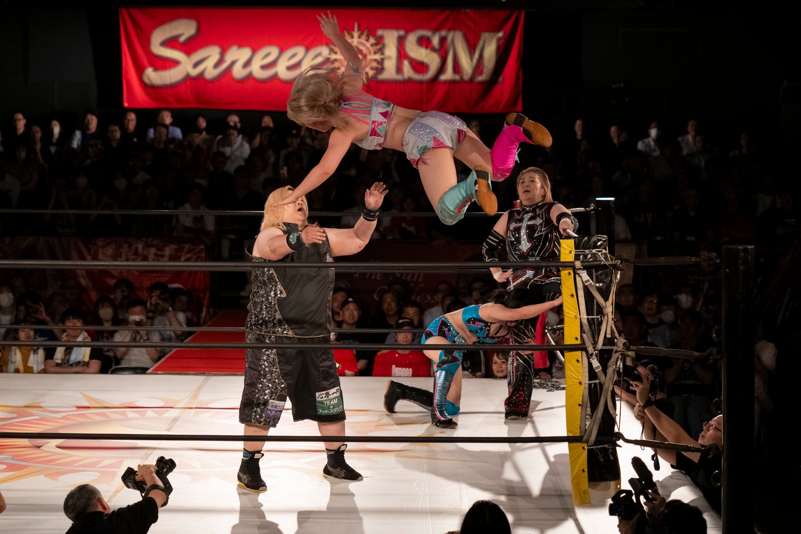 The evening’s main event saw Sareee team with Takumi Iroha as SPARK RUSH against STARDOM’s Saya Kamitani and Natsuko Tora of H.A.T.E. in an 18-minute encounter that began with five minutes of outside brawling.