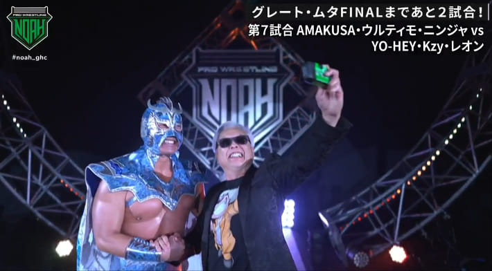 Yes. Sanshiro Takagi, of course, president of CyberFight and Wrestle Universe where we’ll be streaming live tonight. It’ll be Monday Magic. But I wanna talk more about, not just Takagi-san, but the other veterans in your orbit, in your friend circle, right? Masahiro Chono Keiji Muto, Ultimo Dragon, Kaz Hayashi.