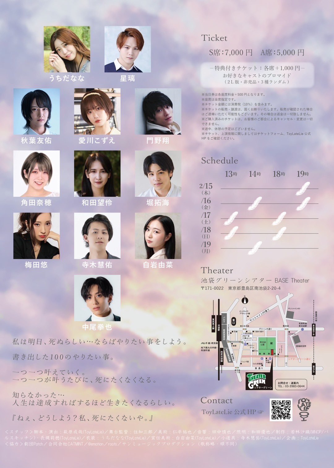 The play was a story about finding the real moments in life, seeing your friends and family, and connecting with them. Death is an inevitability, but when there is a set date, life changes, and that is what the characters all dealt with. It was a clever use of scenery to have many of the buildings serve as seats, tables, or counters for the people to go about their day around. Also, the portions of them walking added a nice visual as you saw them amongst the buildings as they traveled. Nao Kakuta worked at a drinking establishment, which was a hub for many of the interactions, just like in real life. Her character was important because it kept things grounded and added stability. They knew she would greet them with warmth and hospitality, which was important as everyone was trying to react and process the news. Music was used in a nice and unobtrusive manner; it was a plaintive and slightly somber piano score throughout that set the tone for the gamut of emotions that each person was experiencing. It was a highly emotional 2 hours, as the young couple got the heartbreaking news and decided to tackle a list of 100 things to do.