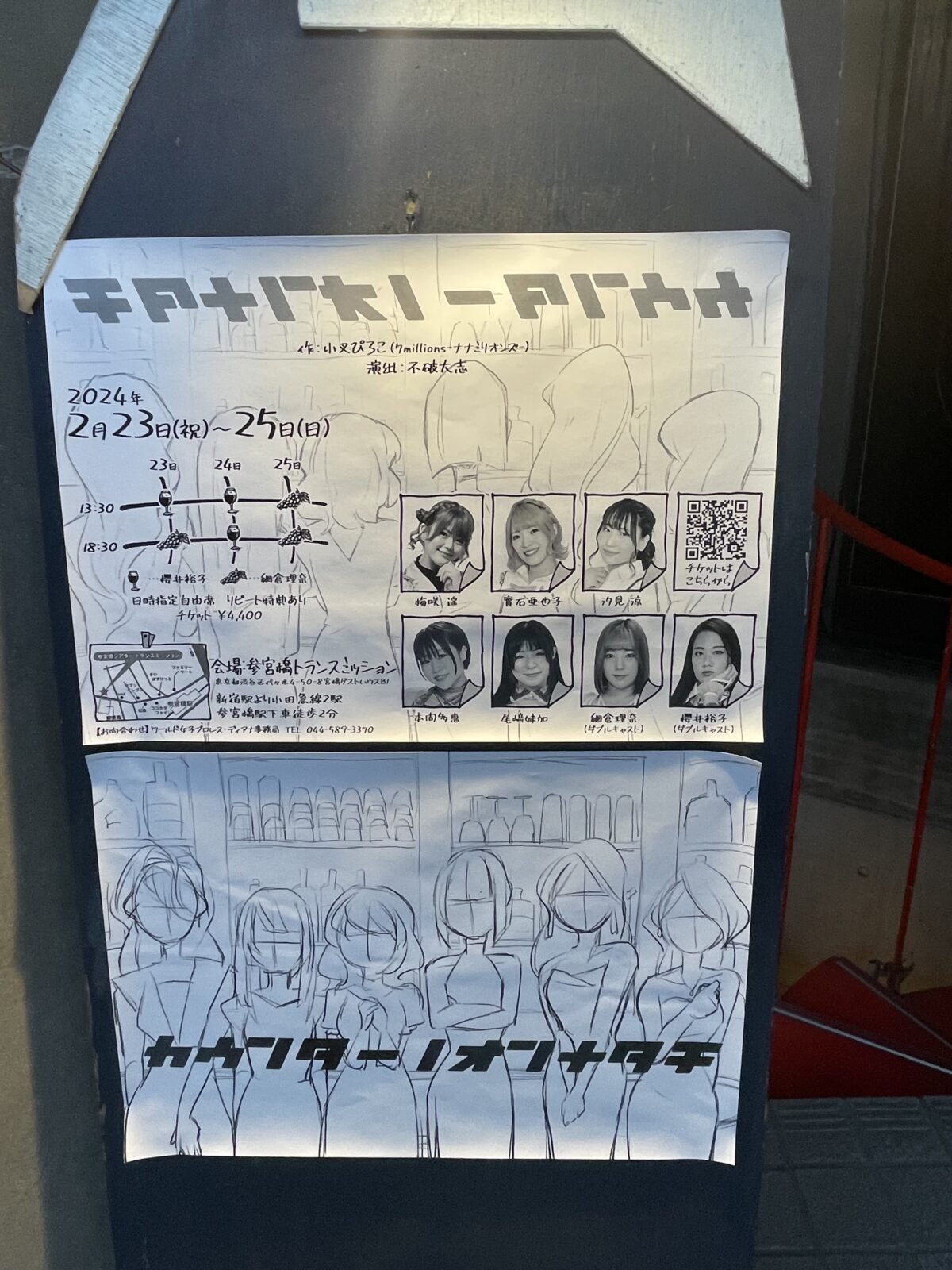 Being held at the Trace Mission Sangubasi, the cast was a mixture of freelancers, COLOR’S, Diana, and an idol group, and the entire cast was wrestling-related. The set was a variation of counters, using rolling sections and seats that were rearranged for each scene. The play opens with 3 customers, 3 saleswomen, and 3 problems and the resolutions each pair reach. In the next scene, it’s revealed that the customers all work at a bar together and therefore are also in the realm of customer service. Throughout the play, their issues keep bothering them, and we begin to see that they are not all that different from one another. It was a good showcase for Haruka Umesaki, who had never done a play prior to this production. It would be hard to tell because she is a natural; she has a wonderful ability to convey the frustrated but eager to make happy that is having her patients tested with demanding customers.